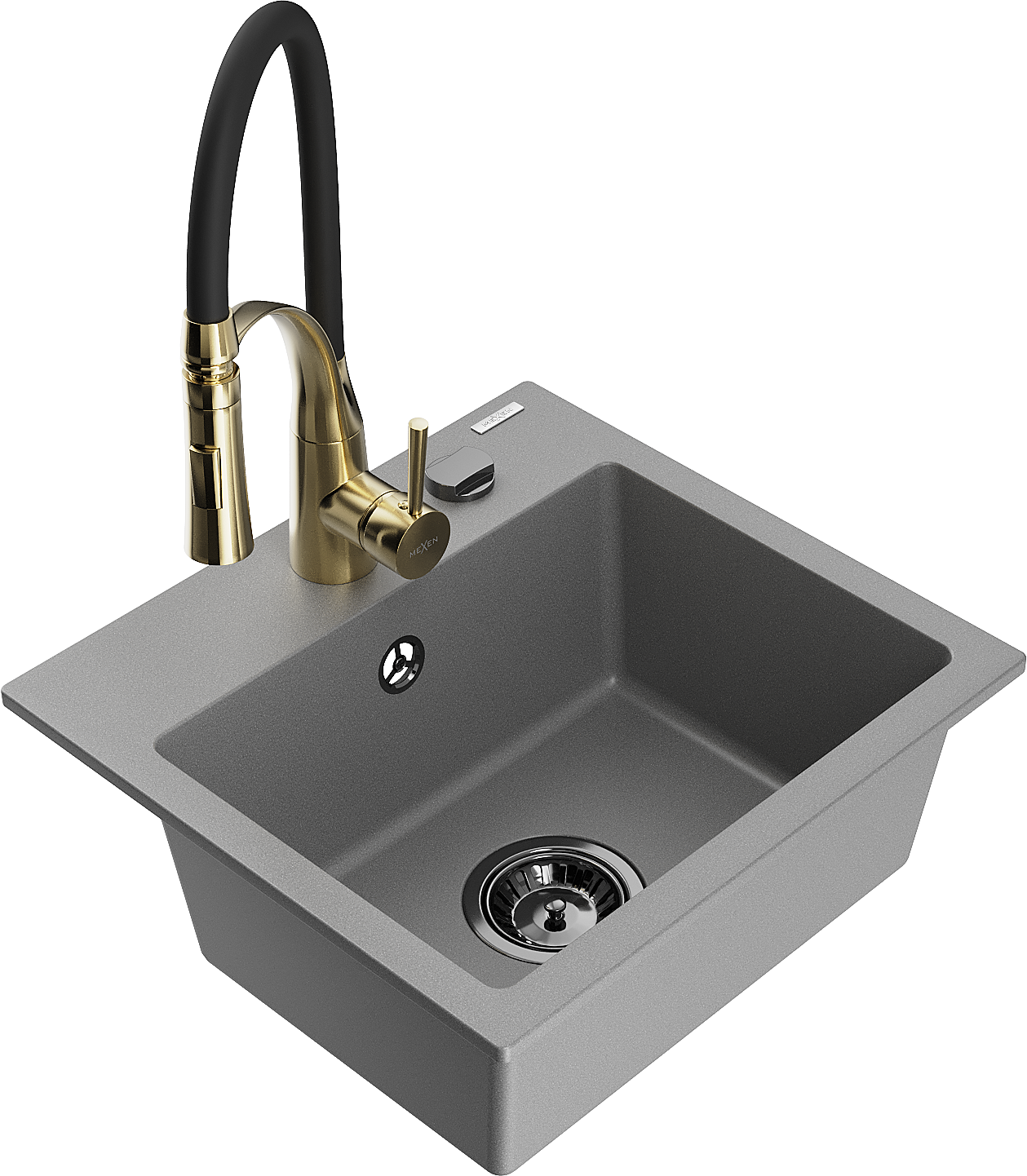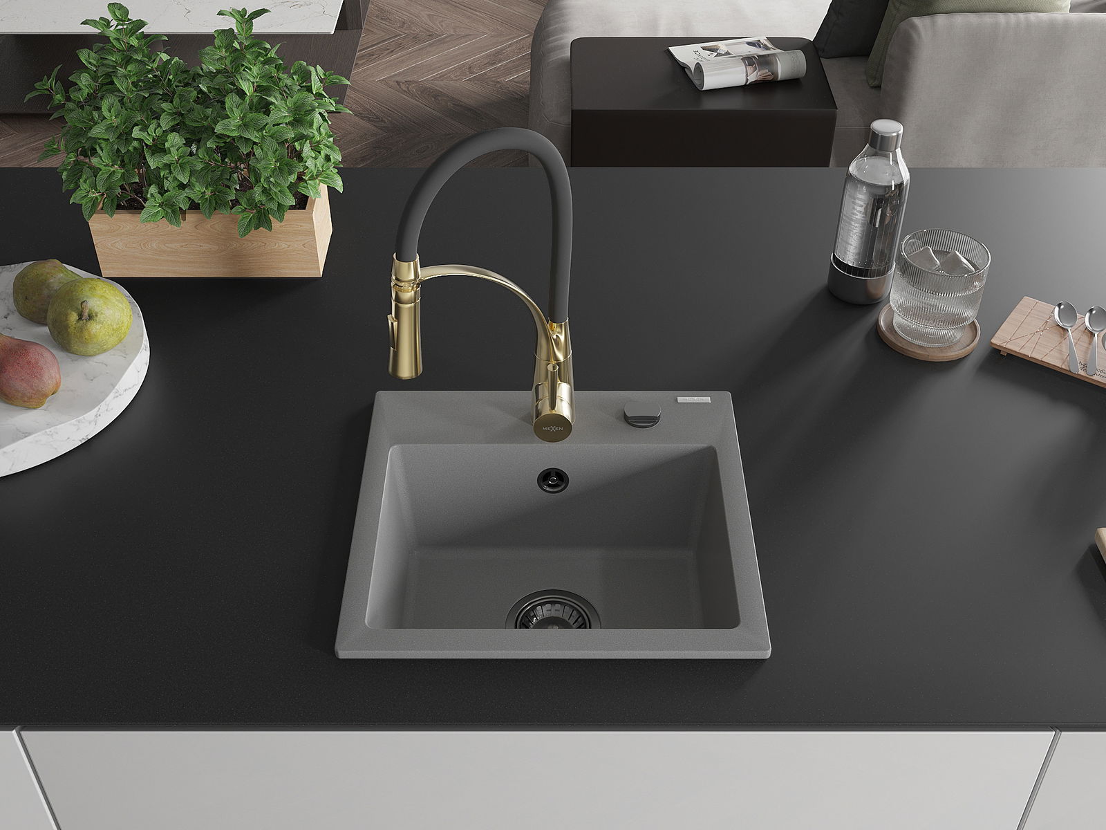 Mexen Milo egymedencés gránit mosogató Aster konyhai csapteleppel, szürke - 6505-71-73450-57-B