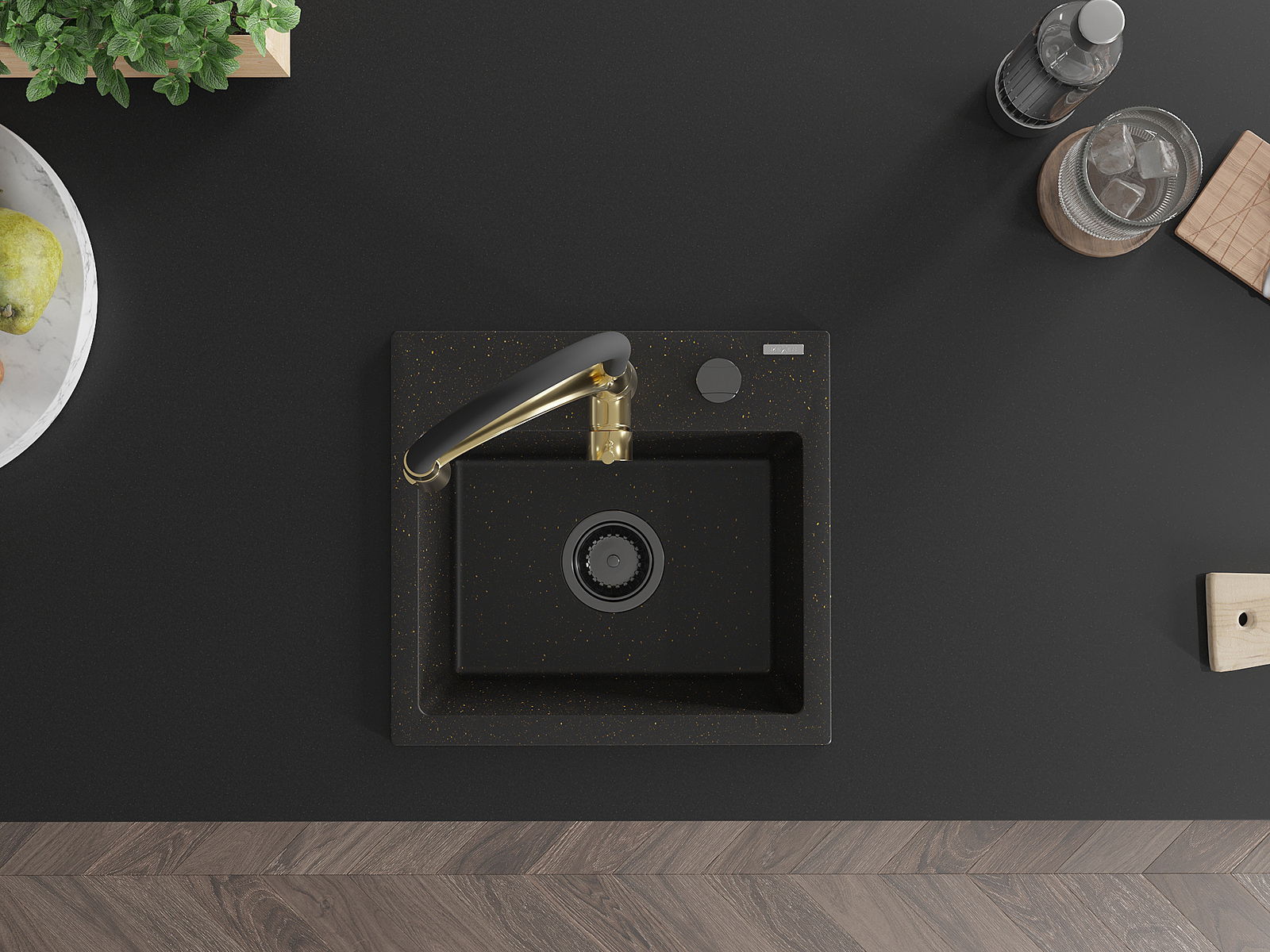 Mexen Milo egymedencés gránit mosogató konyhai csapteleppel Aster, fekete/arany metál - 6505-75-73450-57-B