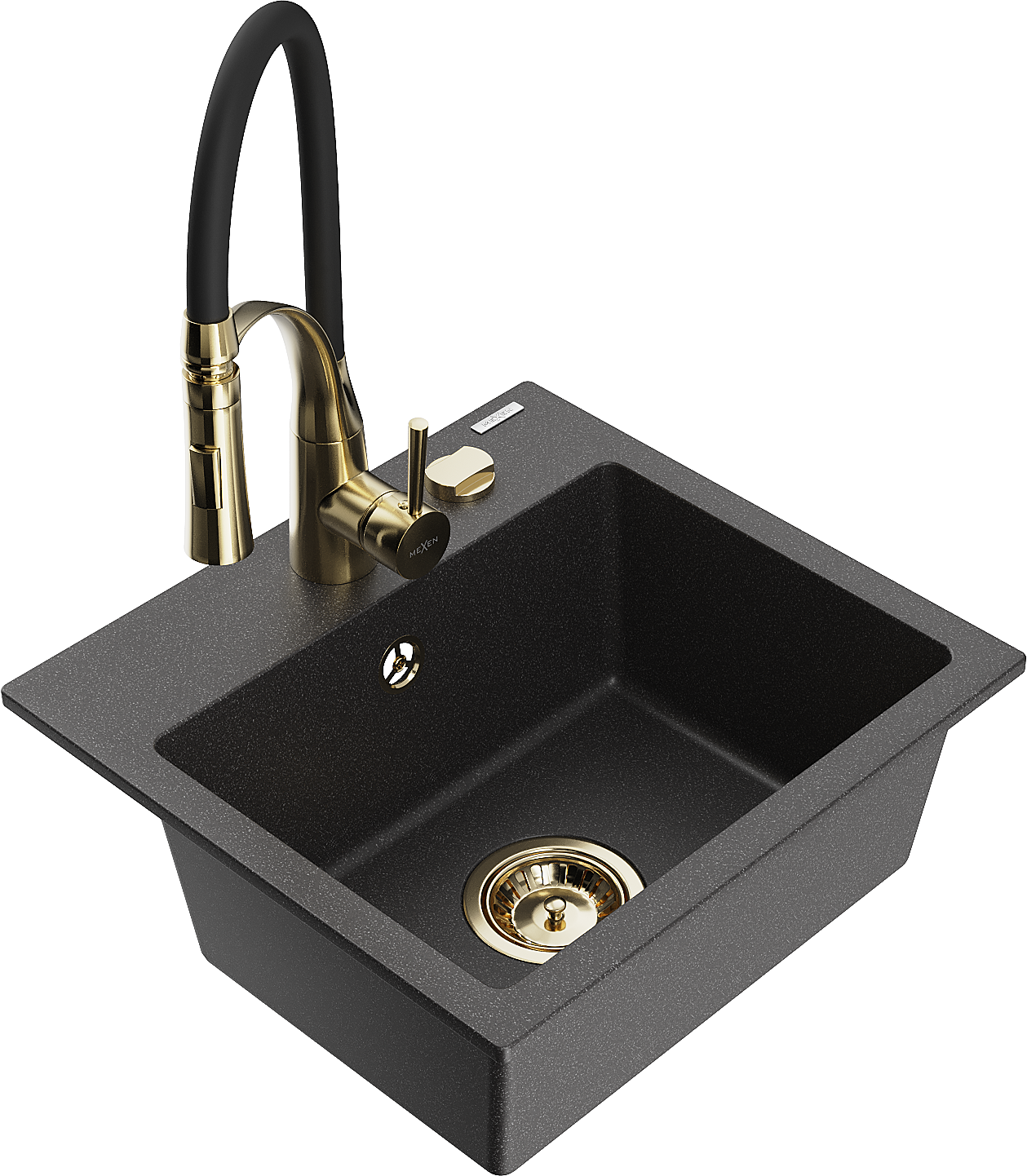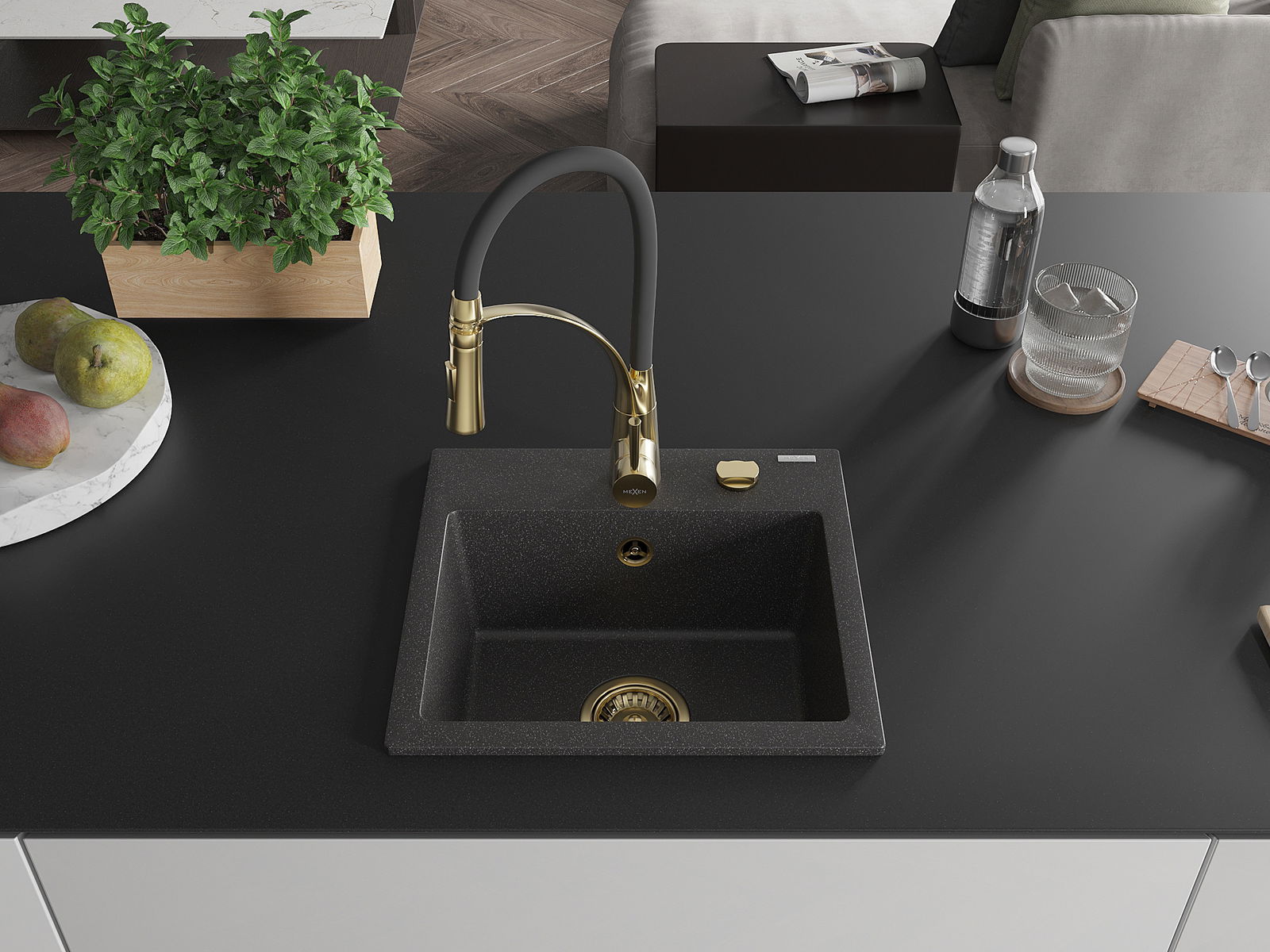 Mexen Milo gránit mosogató 1-medencés konyhacsappal Aster, fekete pöttyös - 6505-76-73450-57-G