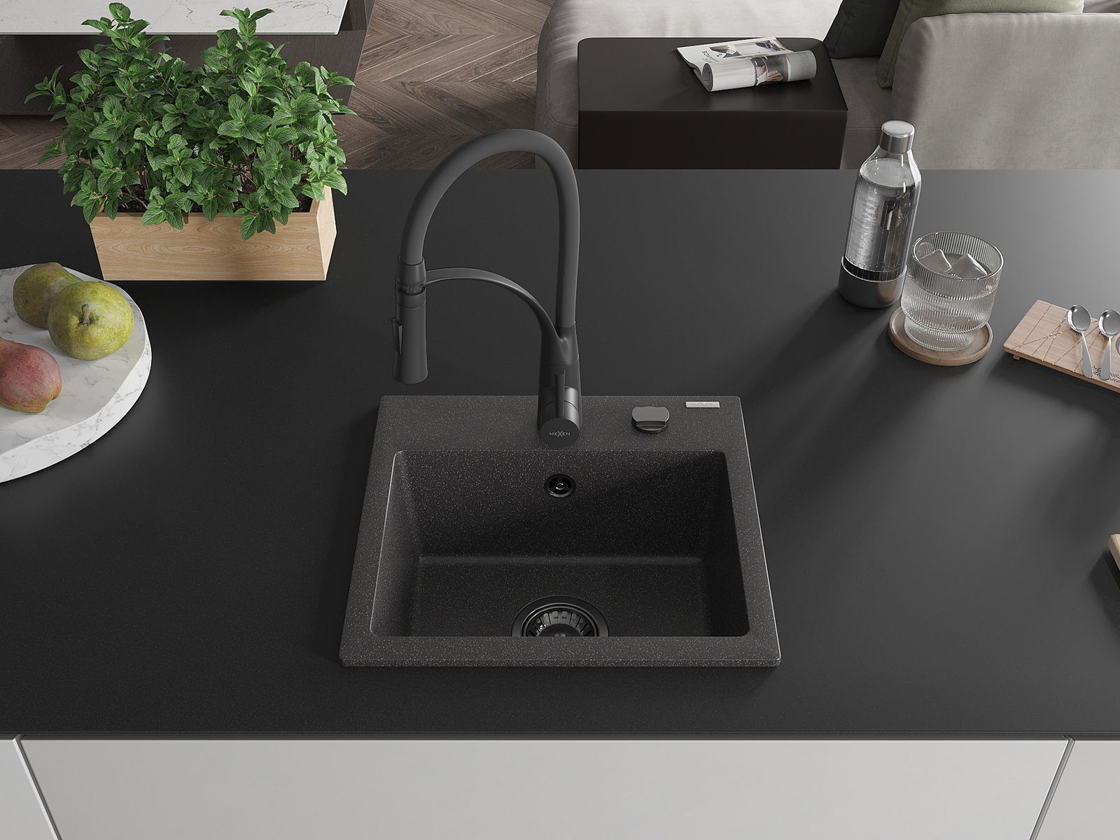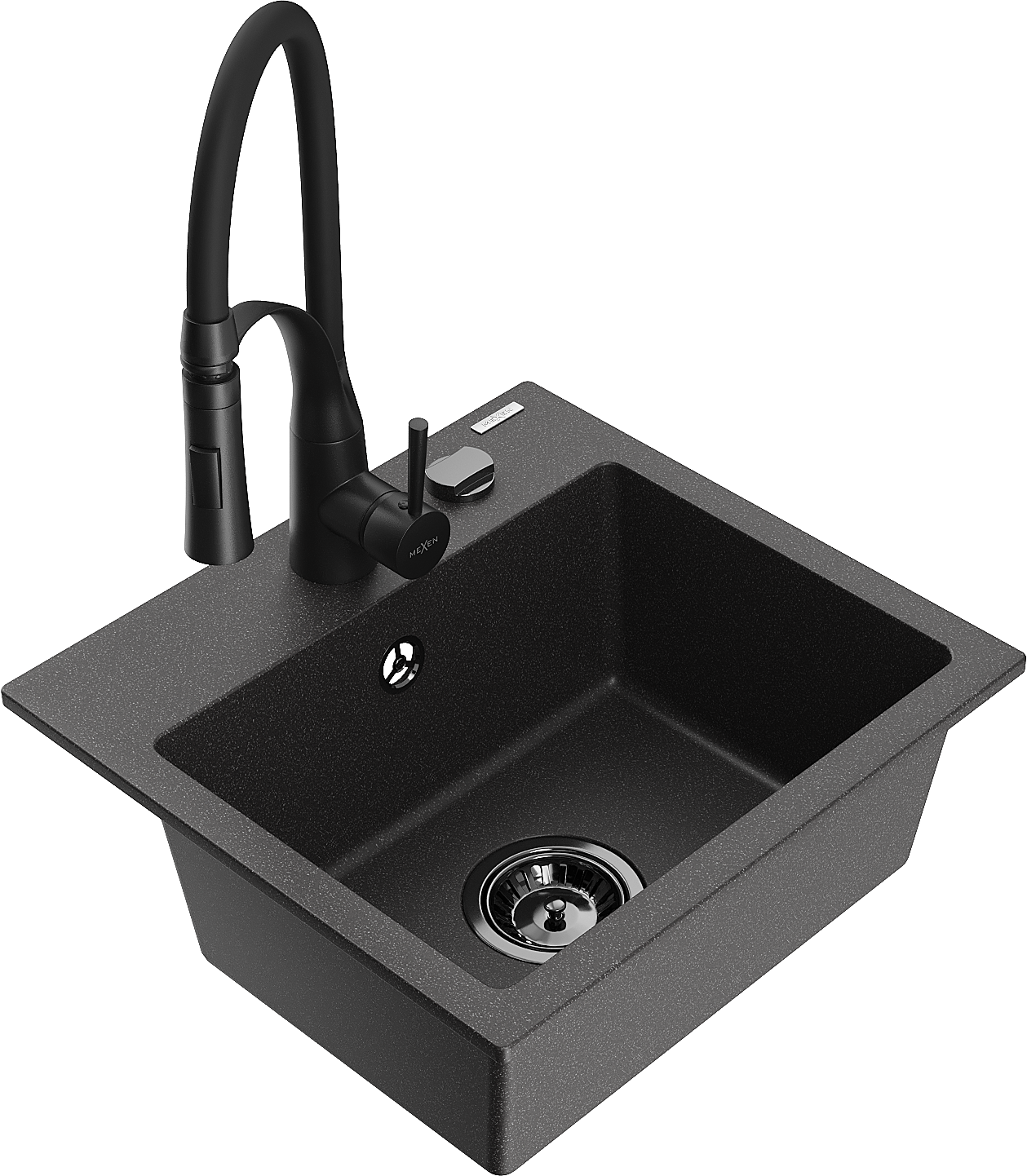 Mexen Milo gránit mosogató 1-medencés konyhai csapteleppel Aster, fekete pöttyös - 6505-76-73450-70-B