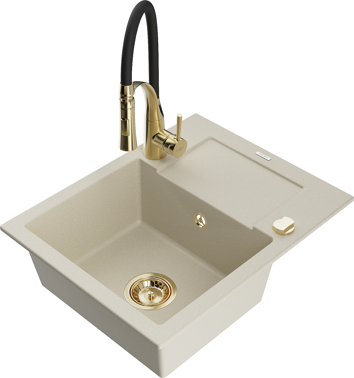 Mexen Enzo 1-medencés gránit mosogató csepegtetővel és Aster konyhai csapteleppel, bézs - 6506-69-73450-57-G