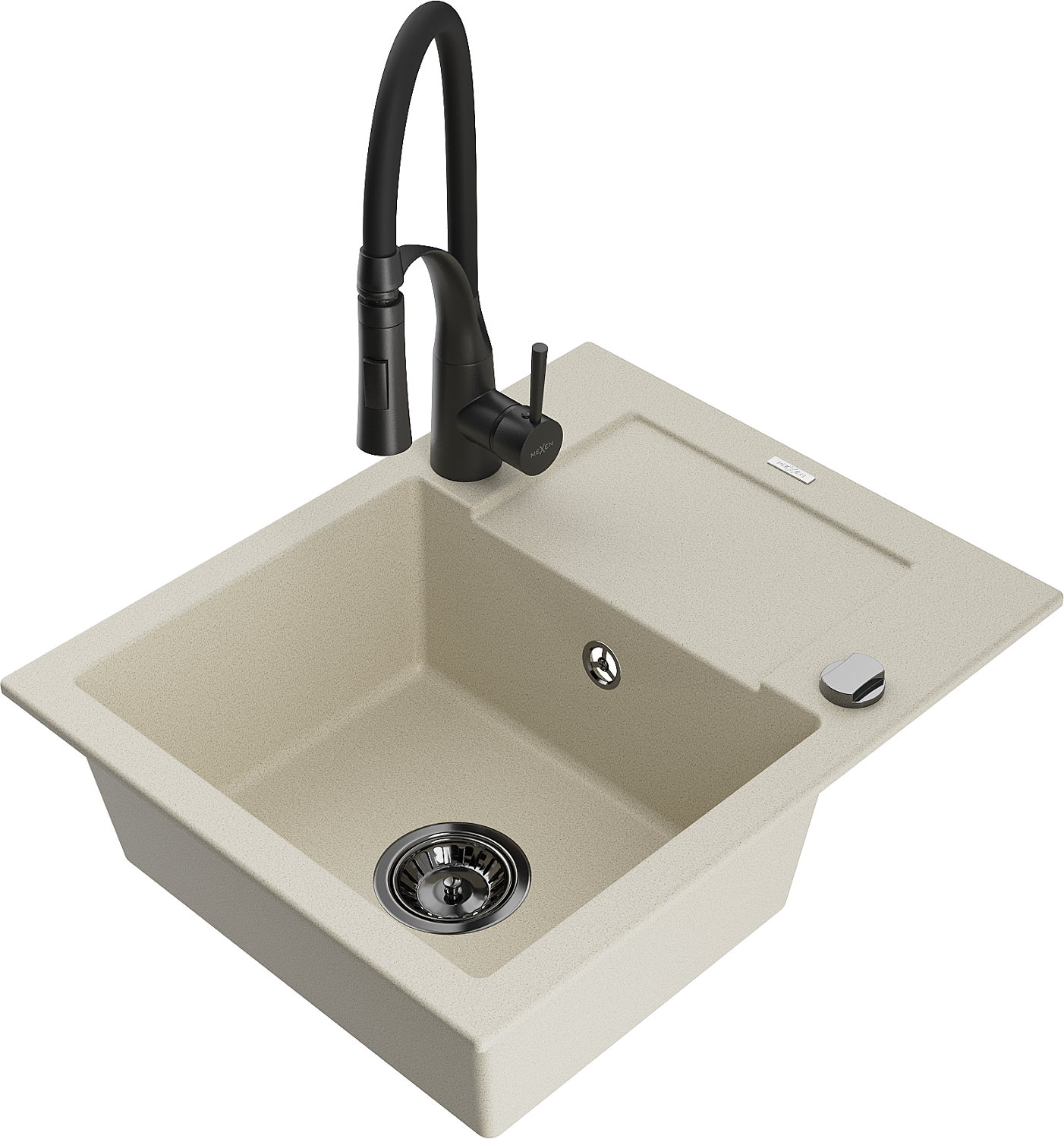 Mexen Enzo 1-medencés gránit mosogató csepegtetővel és Aster konyhai csapteleppel, bézs - 6506-69-73450-70-B