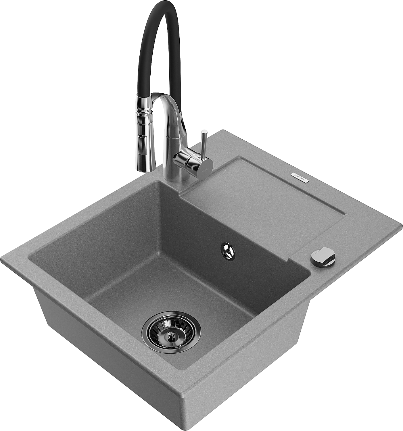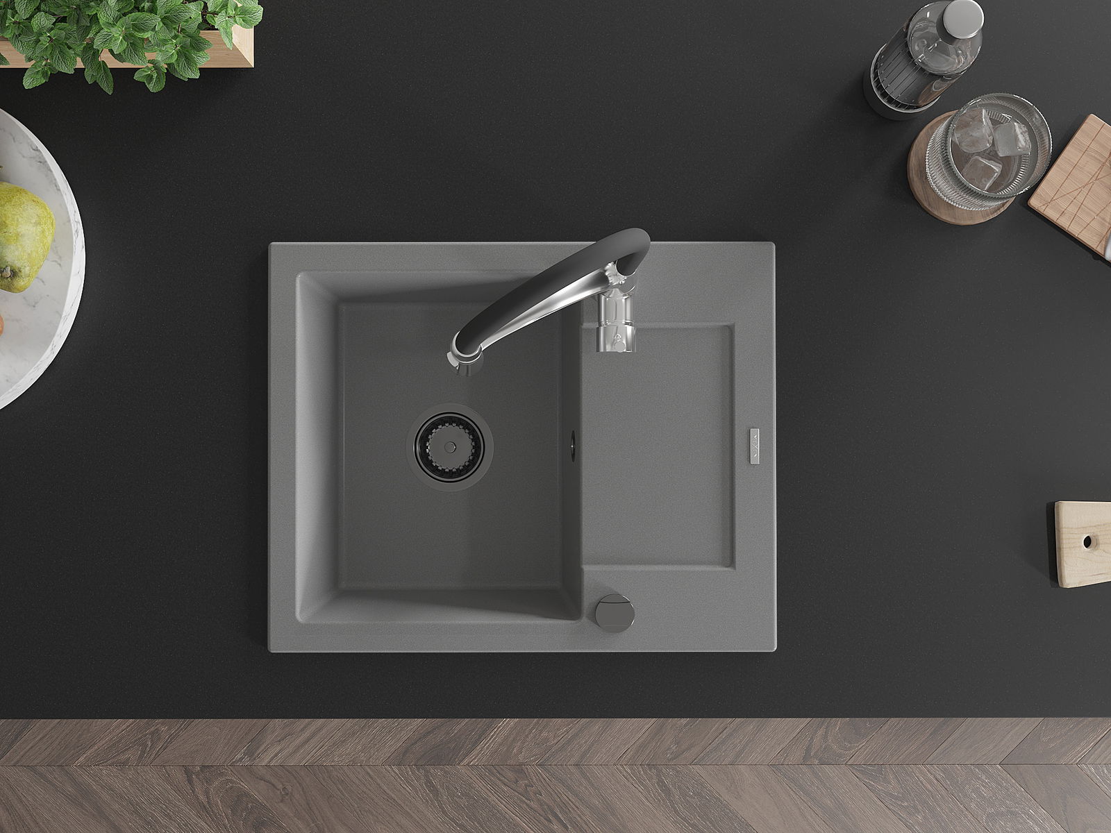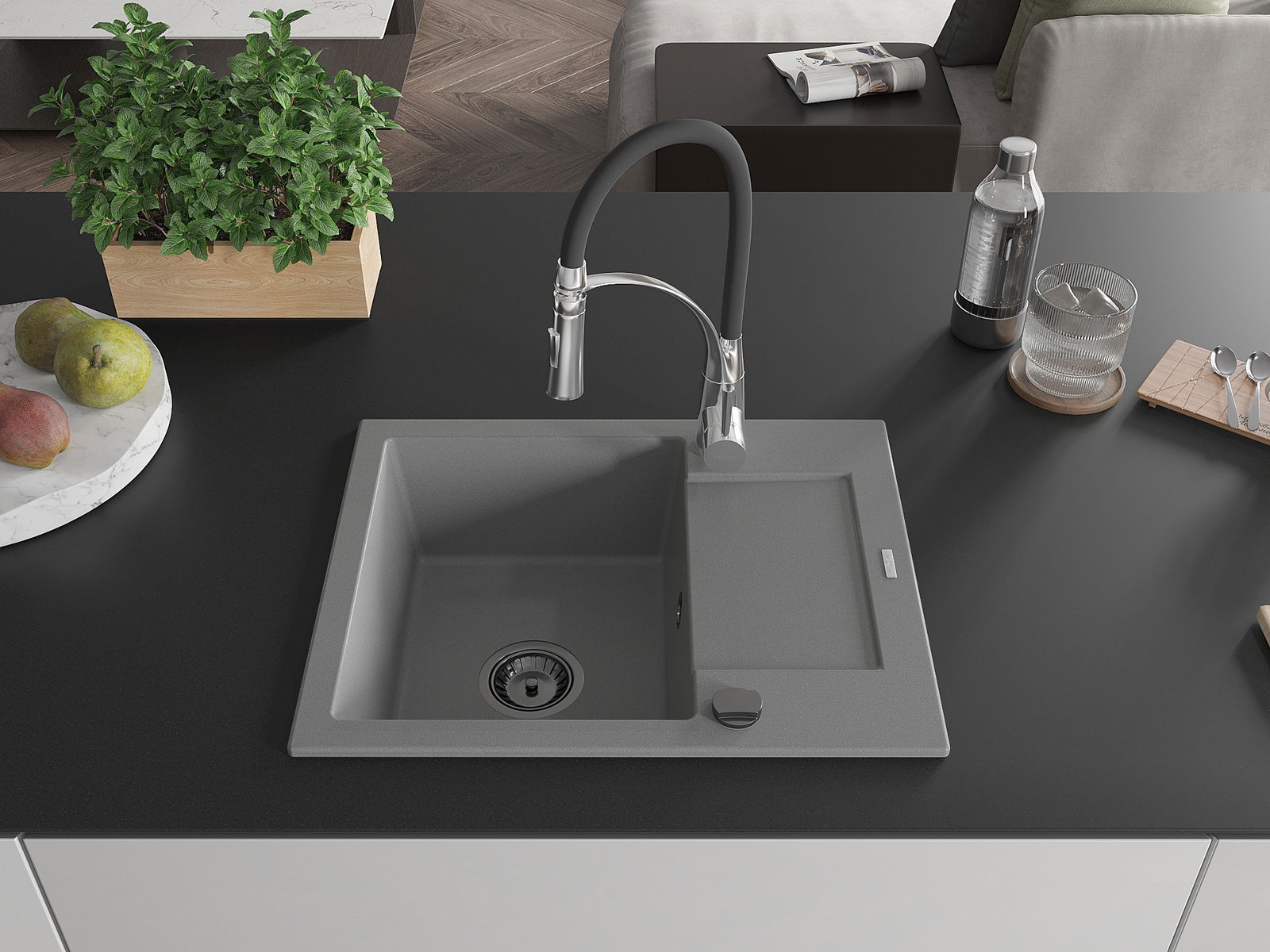 Mexen Enzo 1-medencés gránit mosogató csepegtetővel és Aster konyhai csapteleppel, szürke - 6506-71-73450-07-B