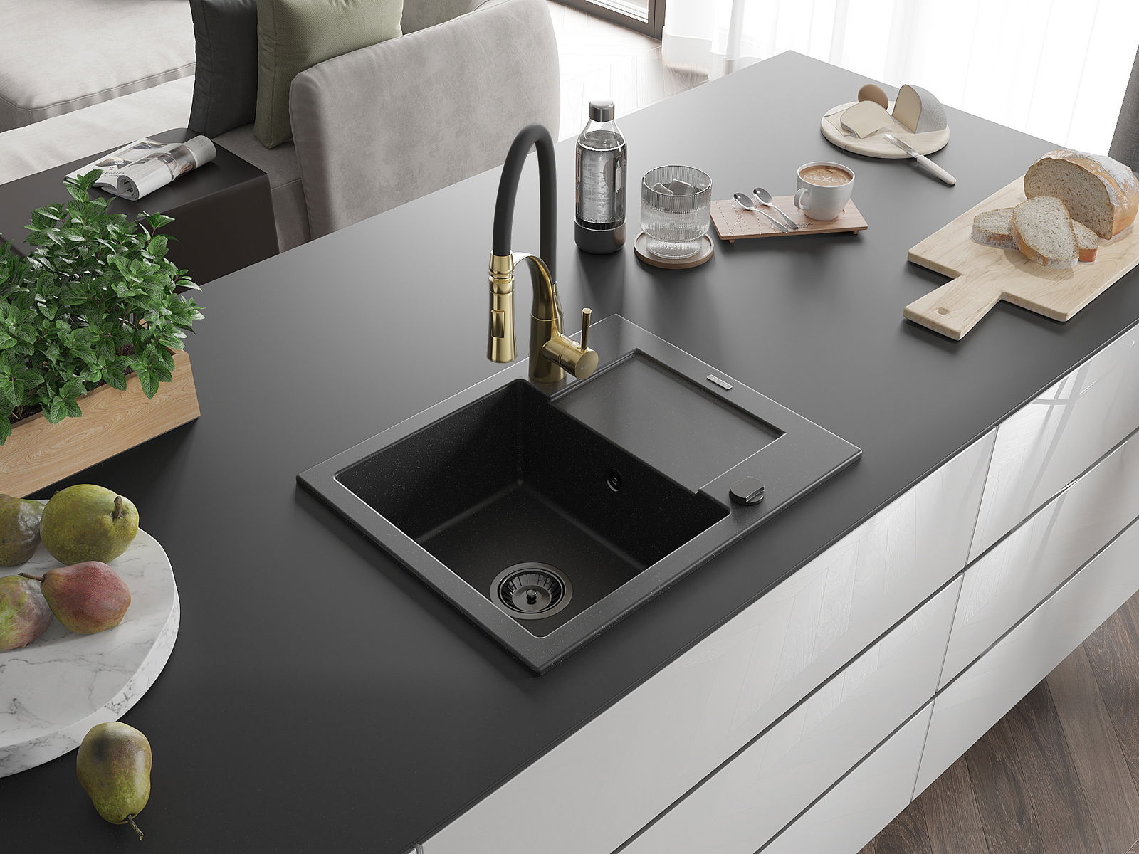 A mosogató magas minőségű gránitból készült. Elegáns, de mindenekelőtt praktikus kiegészítője minden konyhának, függetlenül annak stílusától. A gránit magas minősége és tartóssága hosszú távú használatot biztosít.
