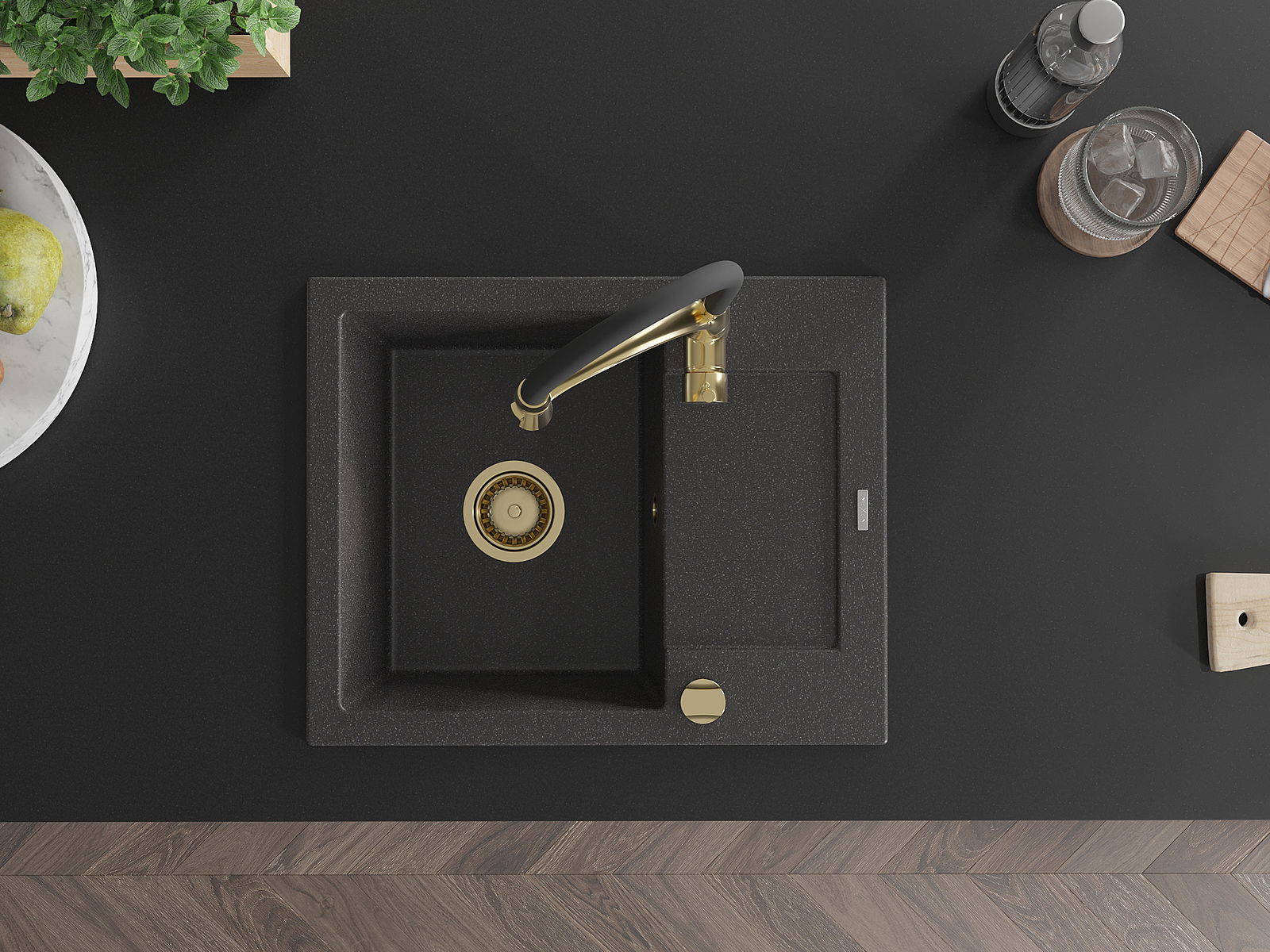 A mosogató kiváló minőségű gránitból készül. Ez egy elegáns és mindenekelőtt minden konyhához praktikus kiegészítés, stílusától függetlenül. A kiváló minőségű és a gránit tartósság biztosítja a sok éves használatát.
