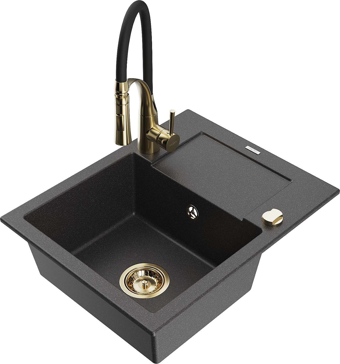 Mexen Enzo 1-medencés gránit mosogató csepptálcával és Aster konyhai csappal, fekete pöttyös - 6506-76-73450-57-G