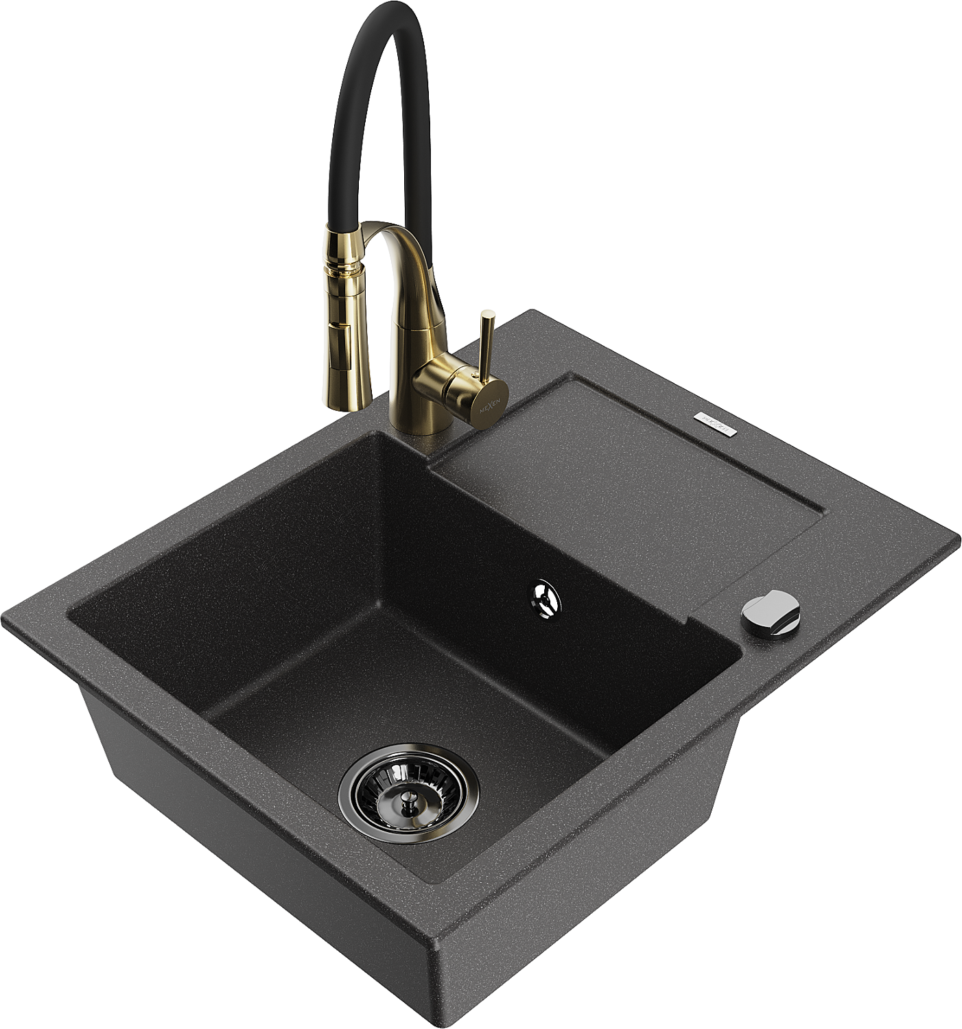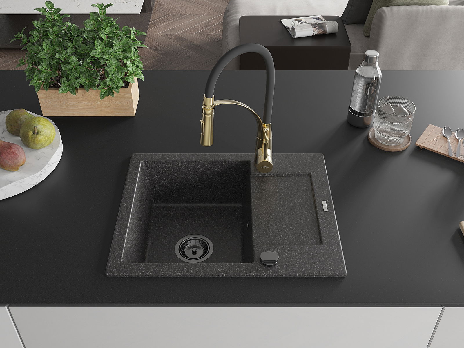 A mosogató magas minőségű gránitból készült. Elegáns, de mindenekelőtt praktikus kiegészítője minden konyhának, függetlenül annak stílusától. A gránit magas minősége és tartóssága hosszú távú használatot biztosít.