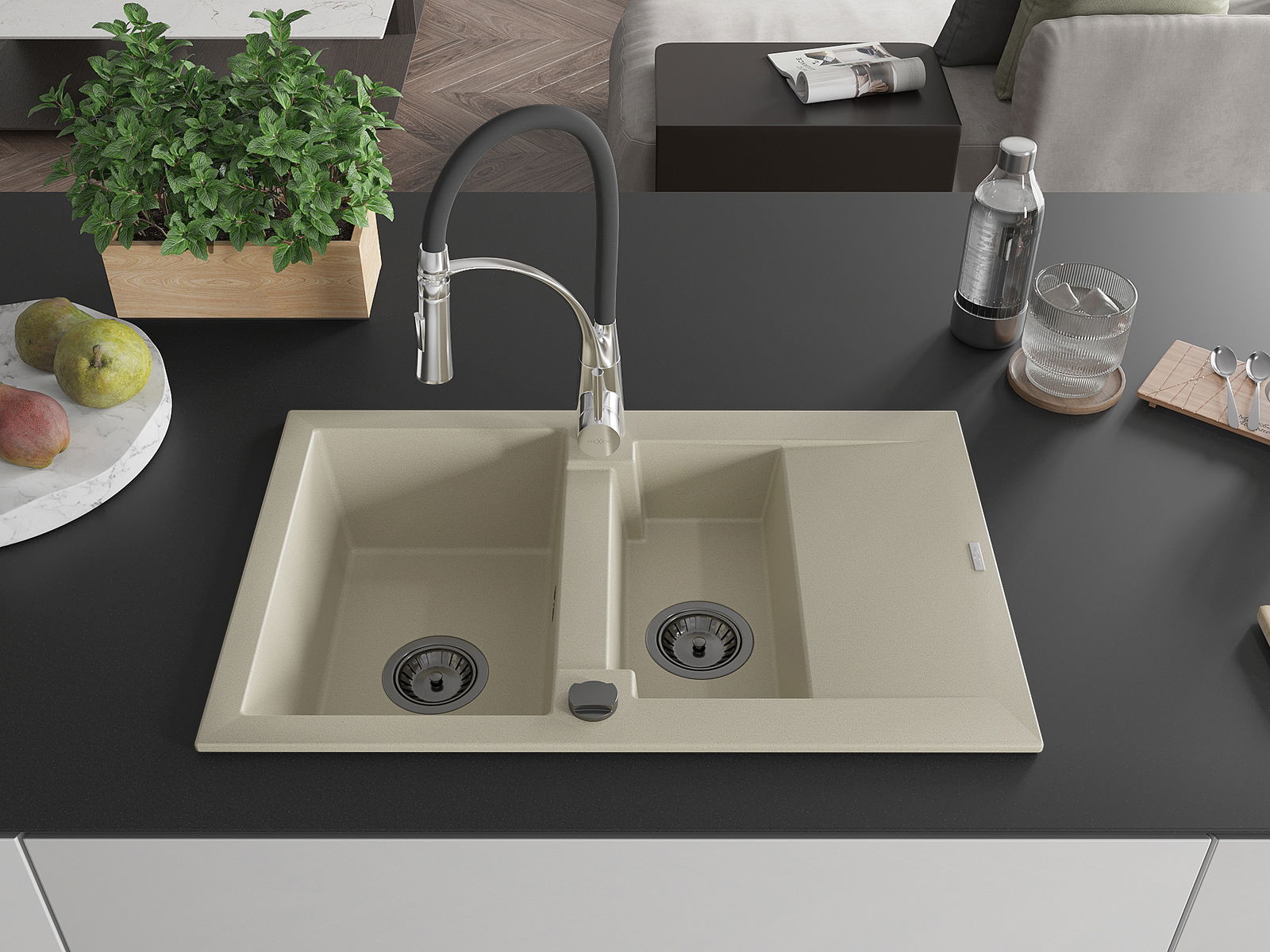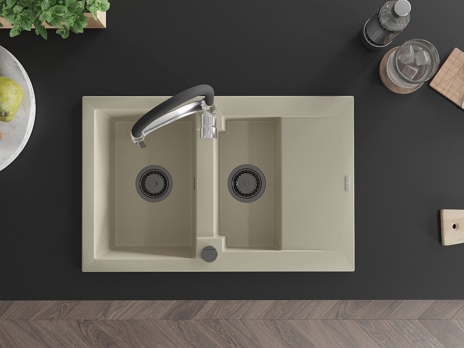A mosogató kiváló minőségű gránitból készül. Ez egy elegáns és mindenekelőtt minden konyhához praktikus kiegészítés, stílusától függetlenül. A kiváló minőségű és a gránit tartósság biztosítja a sok éves használatát.