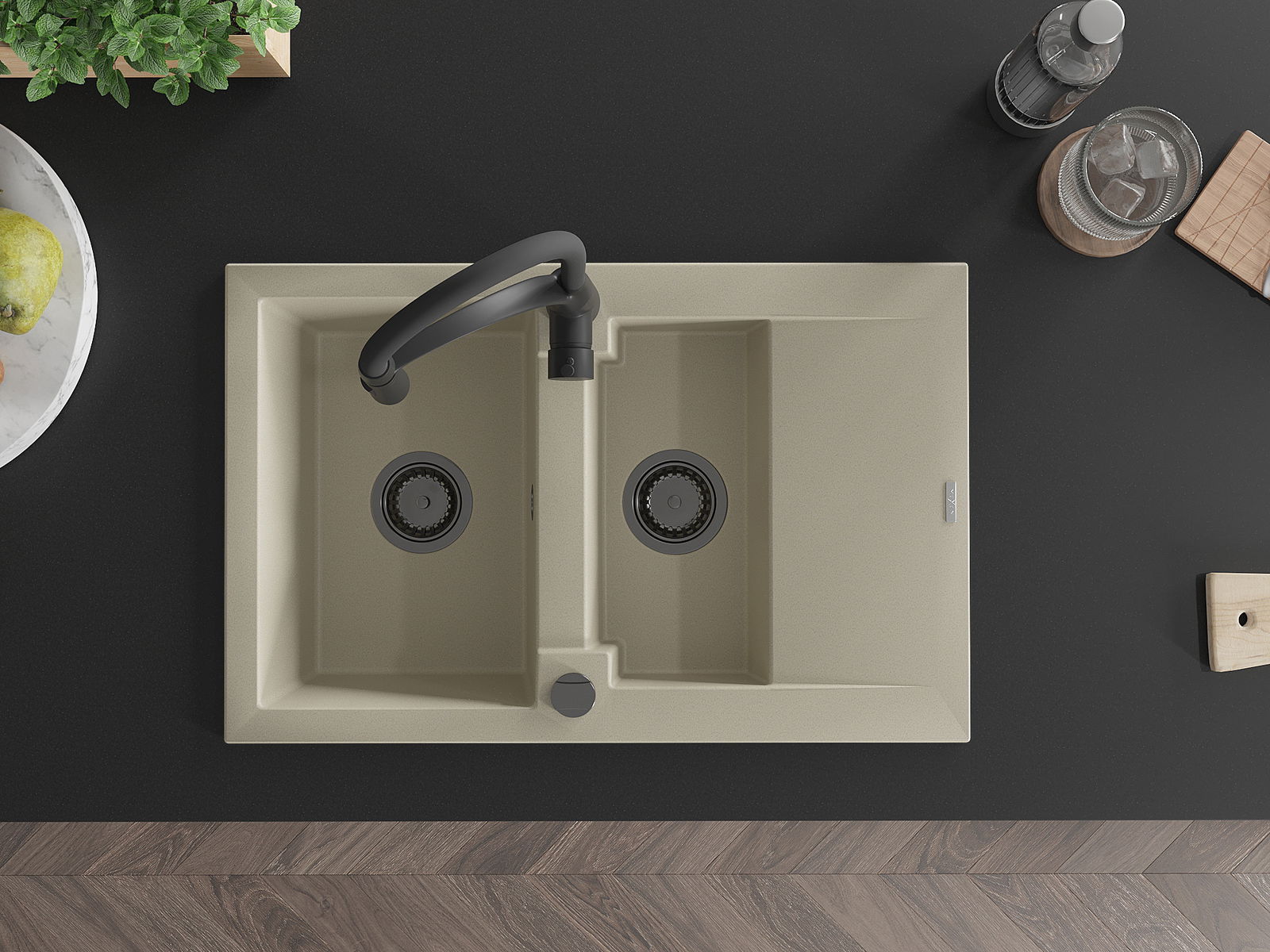 Mexen Gaspar gránit mosogató 1,5 rekeszes, csepegtetővel és Aster konyhai csappal, bézs - 6507-69-73450-70-B