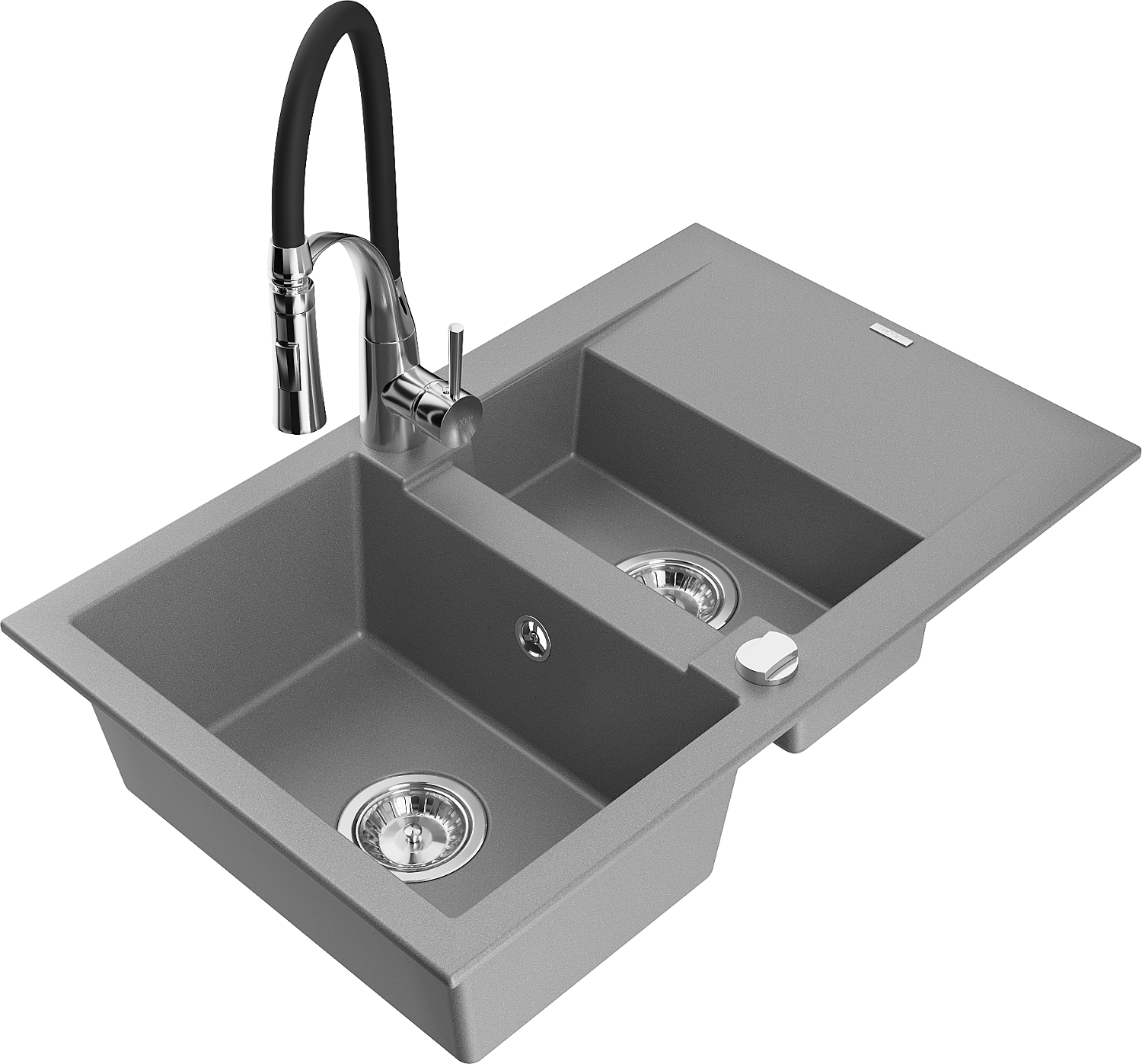 Mexen Gaspar gránit mosogató 1,5-medencés, csepegtetővel és Aster konyhai csapteleppel, szürke - 6507-71-73450-07