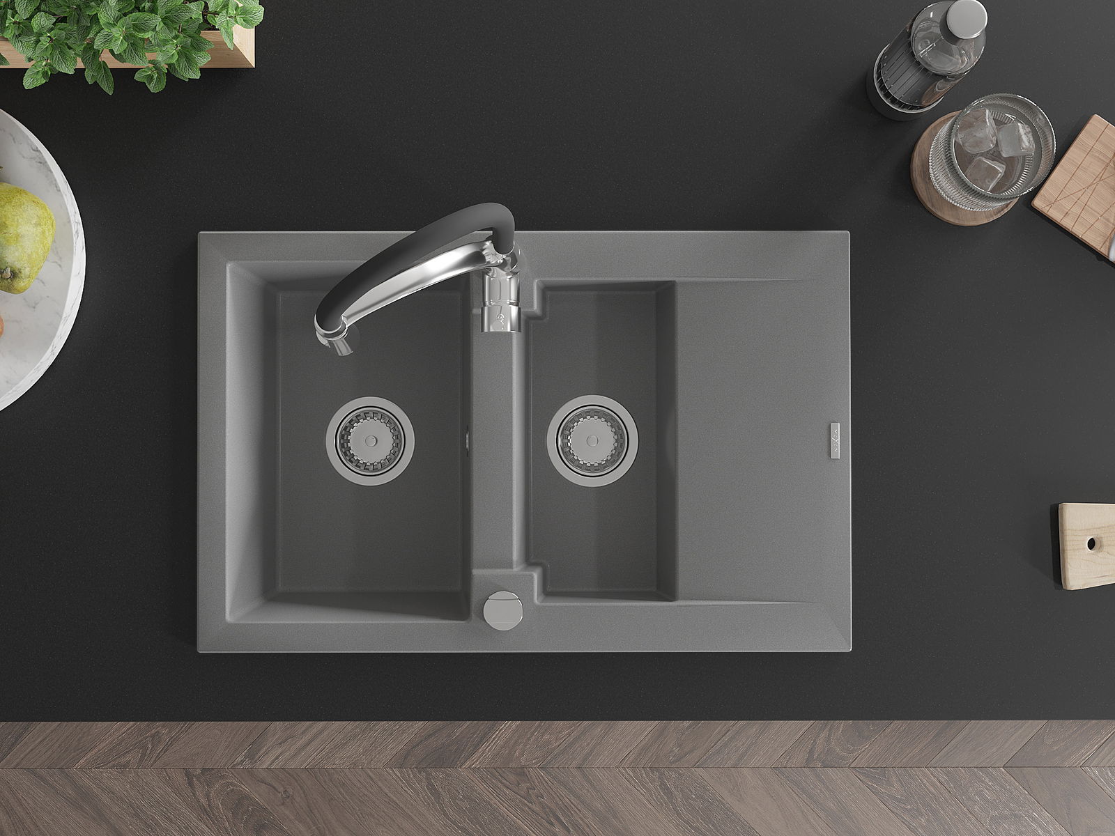 A mosogató kiváló minőségű gránitból készül. Ez egy elegáns és mindenekelőtt minden konyhához praktikus kiegészítés, stílusától függetlenül. A kiváló minőségű és a gránit tartósság biztosítja a sok éves használatát.