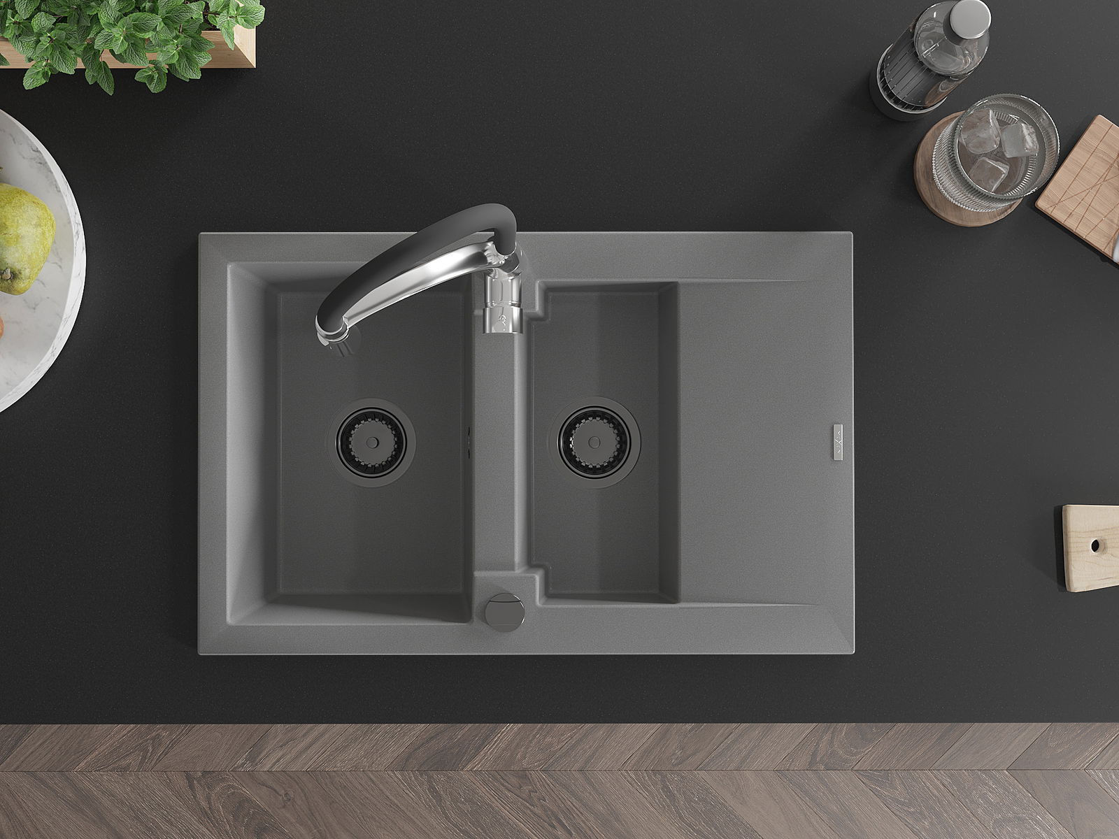 A mosogató kiváló minőségű gránitból készül. Ez egy elegáns és mindenekelőtt minden konyhához praktikus kiegészítés, stílusától függetlenül. A kiváló minőségű és a gránit tartósság biztosítja a sok éves használatát.