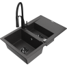 Mexen Gaspar, 1,5 rekeszes gránit mosogató csepegtetővel és Aster konyhai csappal, fekete - 6507-77-73450-57-B