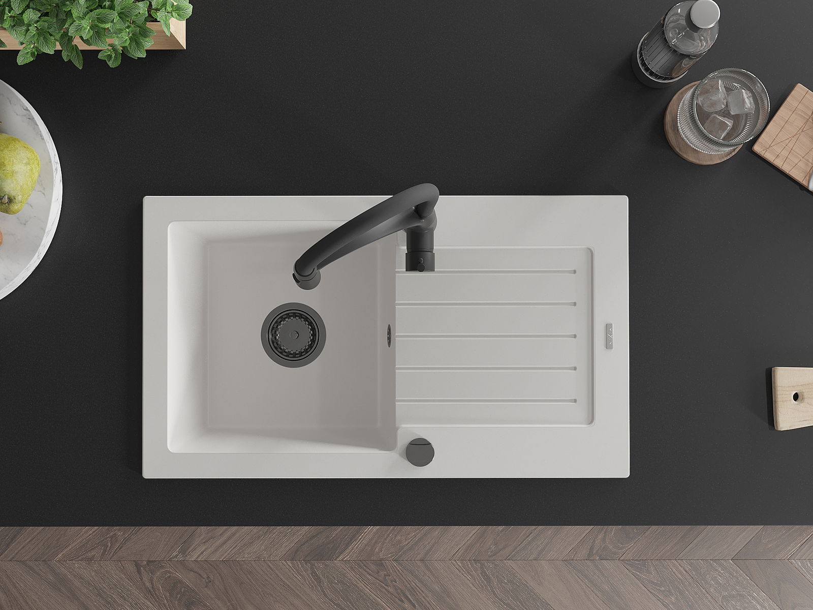 A mosogató magas minőségű gránitból készült. Elegáns, de mindenekelőtt praktikus kiegészítője minden konyhának, függetlenül annak stílusától. A gránit magas minősége és tartóssága hosszú távú használatot biztosít.