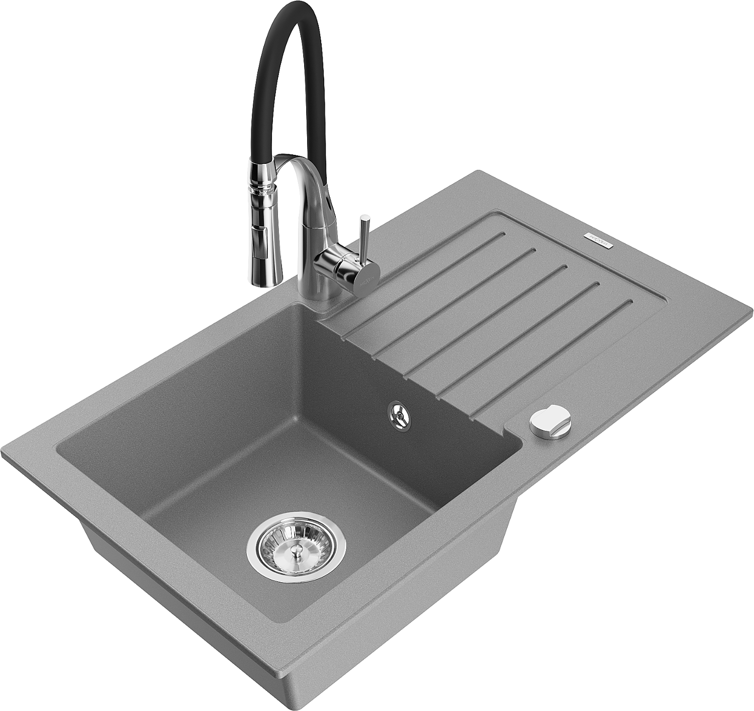 Mexen Pablo 1-kamrás gránit mosogató csepegtetővel és Aster konyhai csapteleppel, szürke - 6510-71-73450-07