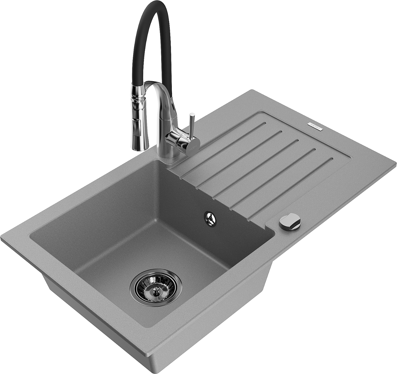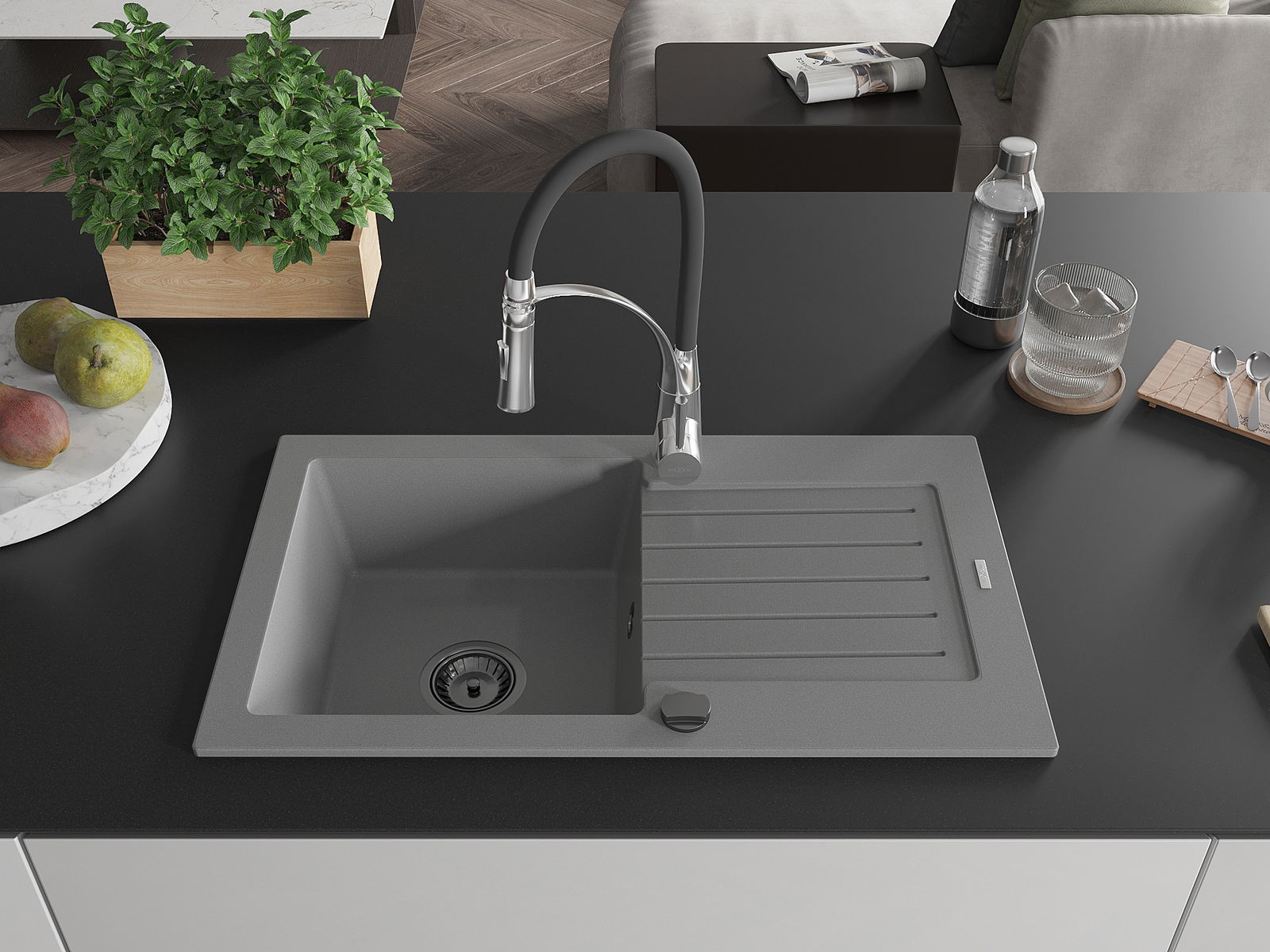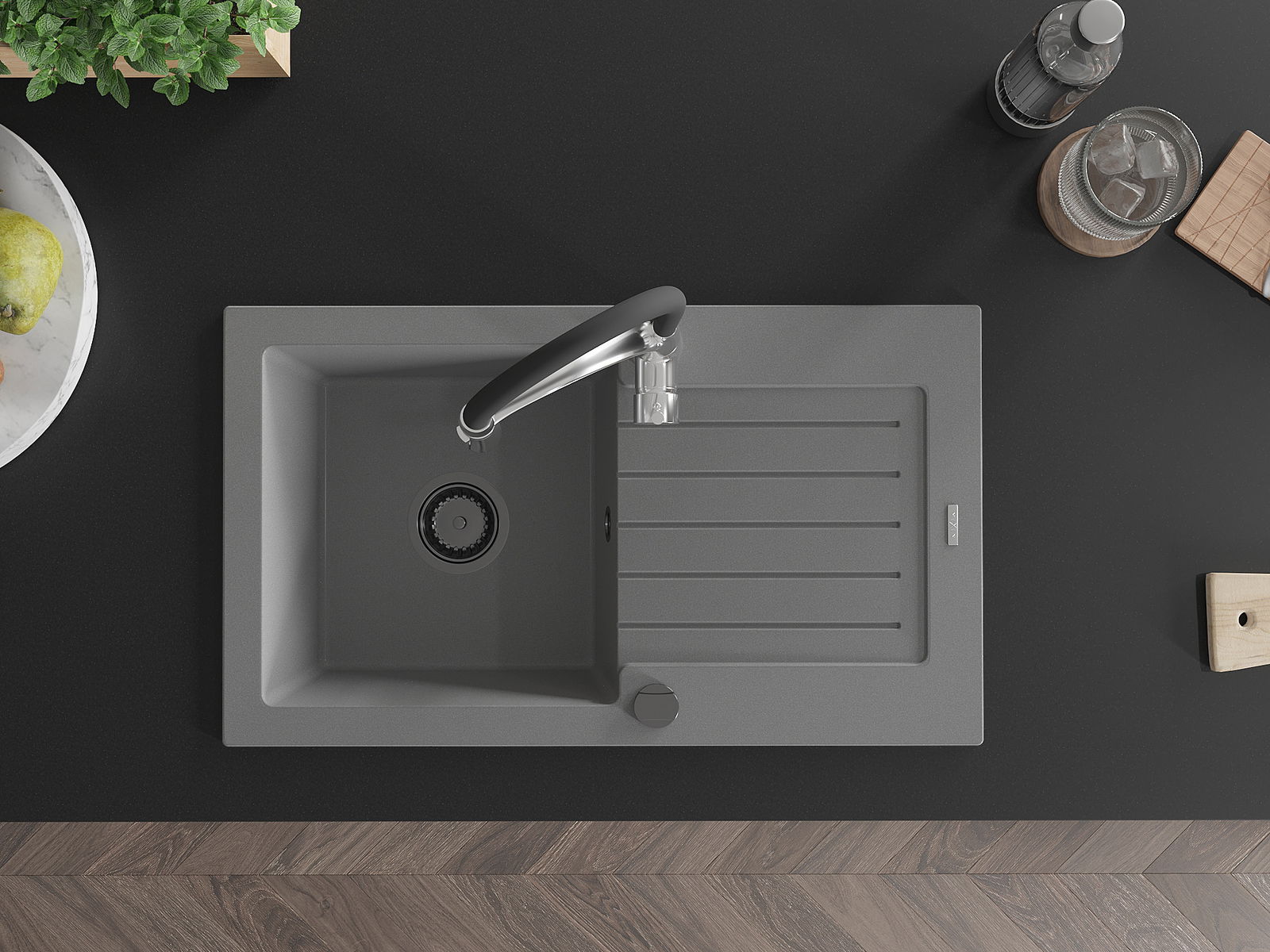 Mexen Pablo 1-medencés gránit mosogató csepegtetővel és Aster konyhai csapteleppel, szürke - 6510-71-73450-07-B