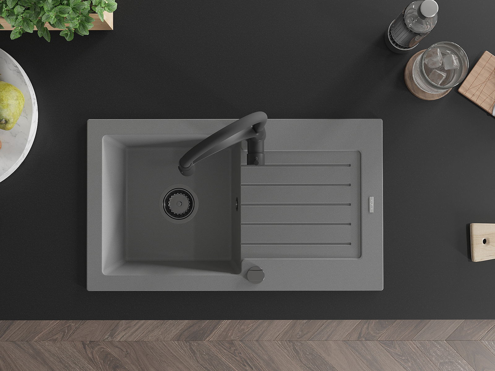 A mosogató magas minőségű gránitból készült. Elegáns, de mindenekelőtt praktikus kiegészítője minden konyhának, függetlenül annak stílusától. A gránit magas minősége és tartóssága hosszú távú használatot biztosít.