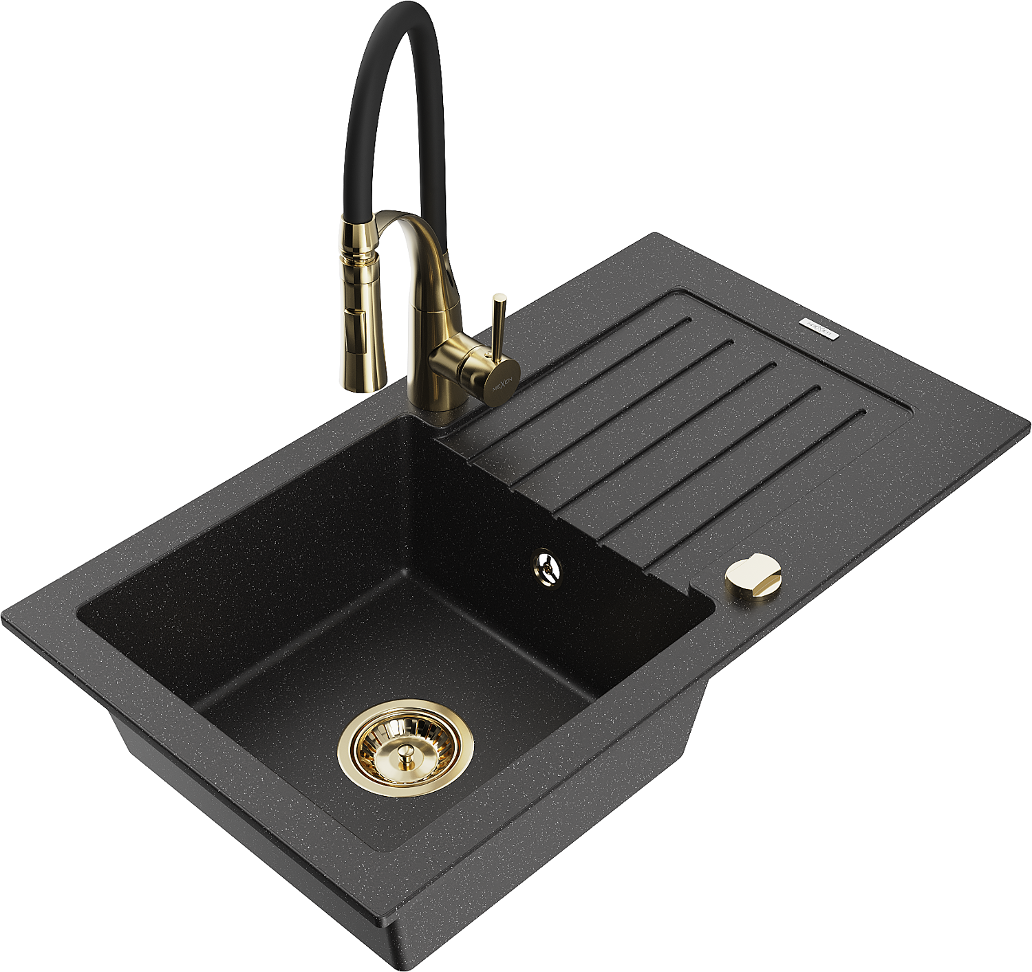 A mosogató magas minőségű gránitból készült. Elegáns, de mindenekelőtt praktikus kiegészítője minden konyhának, függetlenül annak stílusától. A gránit magas minősége és tartóssága hosszú távú használatot biztosít.