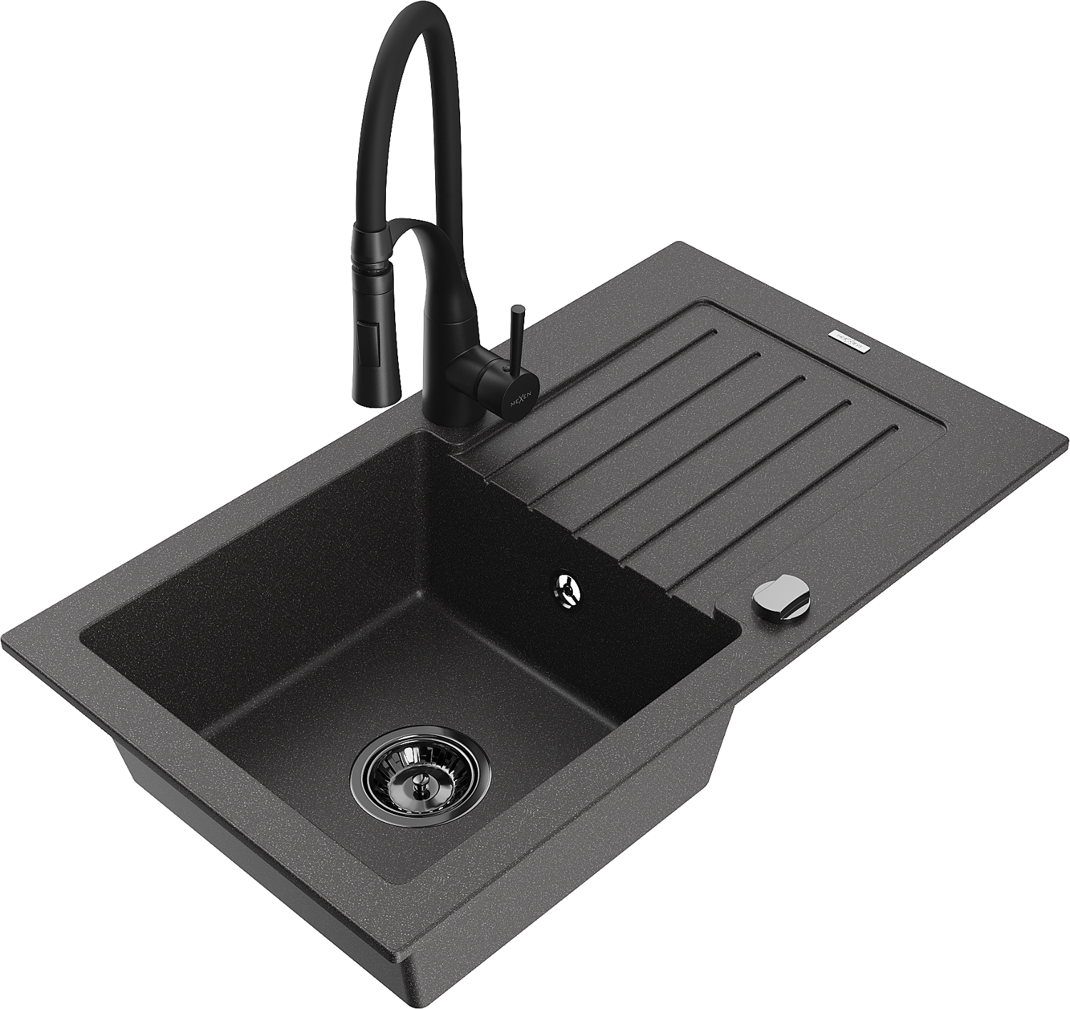A mosogató magas minőségű gránitból készült. Elegáns, de mindenekelőtt praktikus kiegészítője minden konyhának, függetlenül annak stílusától. A gránit magas minősége és tartóssága hosszú távú használatot biztosít.
