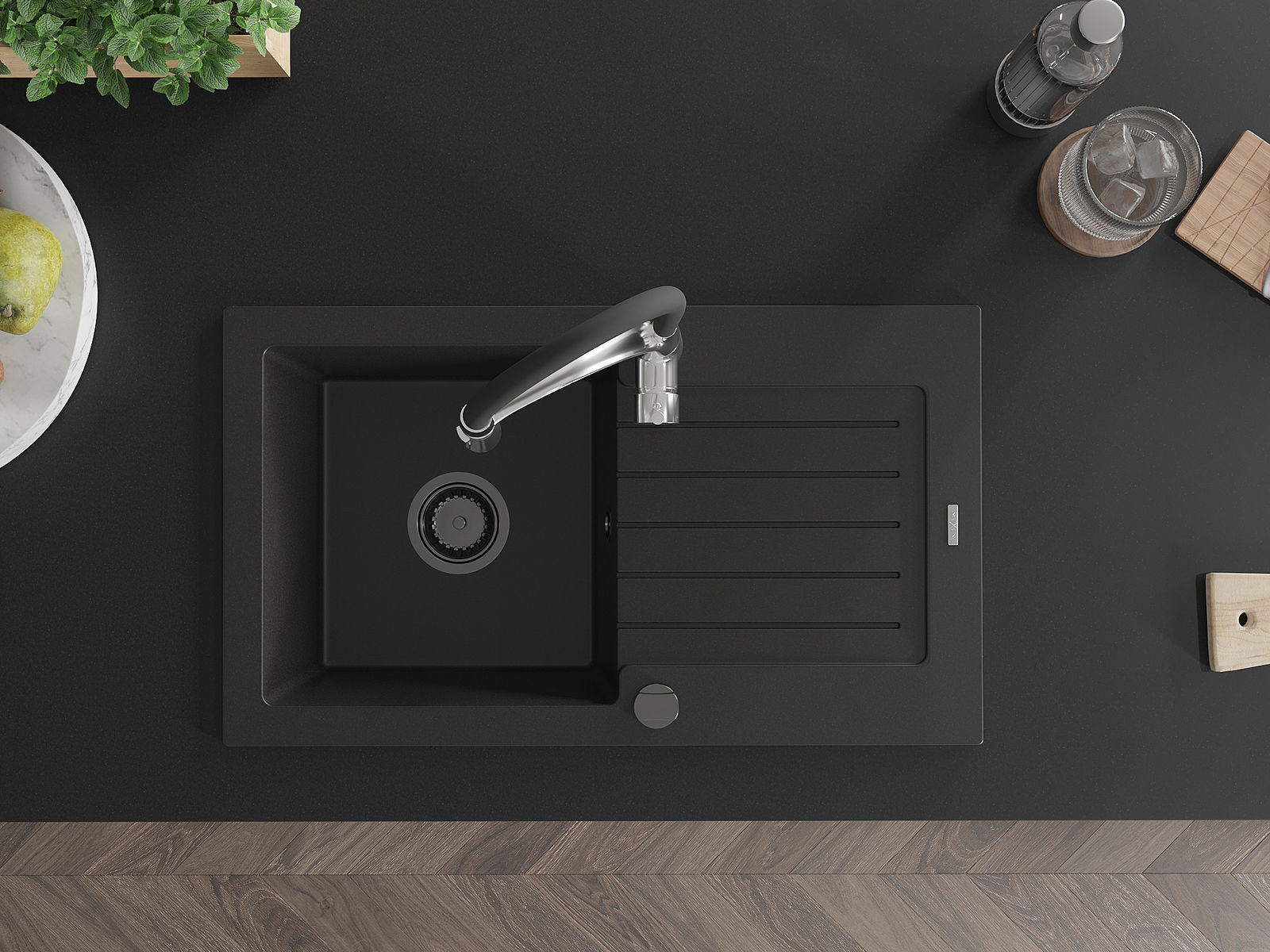 Mexen Pablo egymedencés gránit mosogató csepegtetővel és Aster konyhai csapteleppel, fekete - 6510-77-73450-07-B