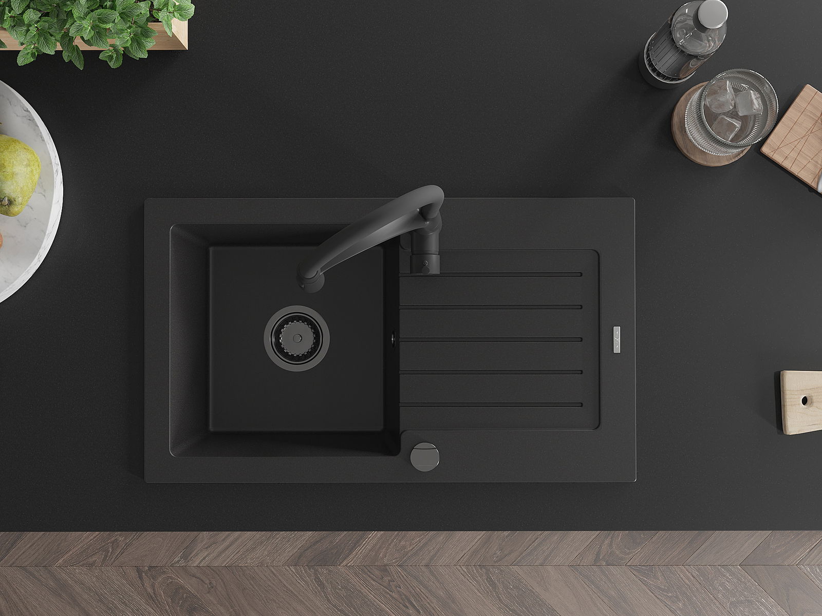 A mosogató magas minőségű gránitból készült. Elegáns, de mindenekelőtt praktikus kiegészítője minden konyhának, függetlenül annak stílusától. A gránit magas minősége és tartóssága hosszú távú használatot biztosít.