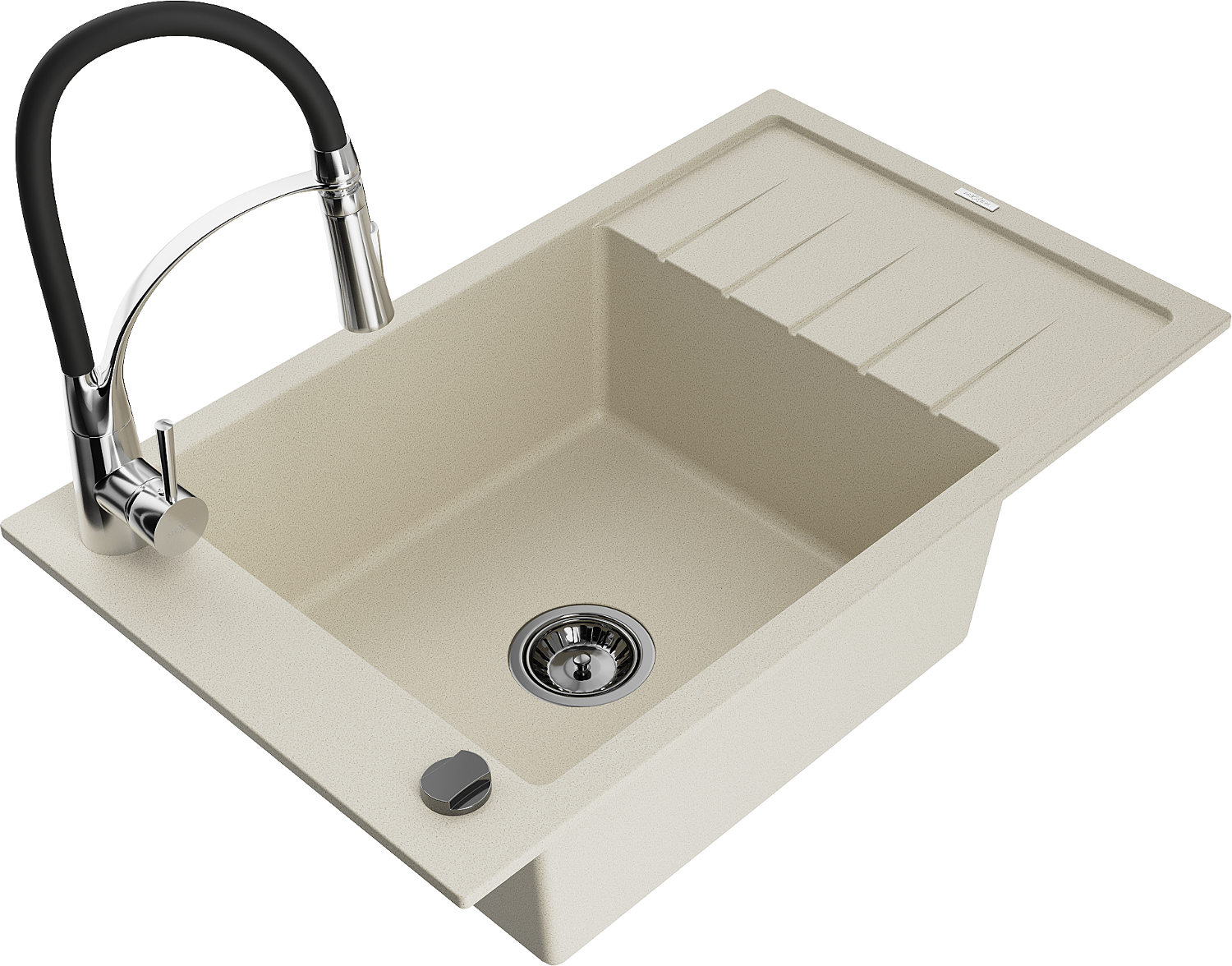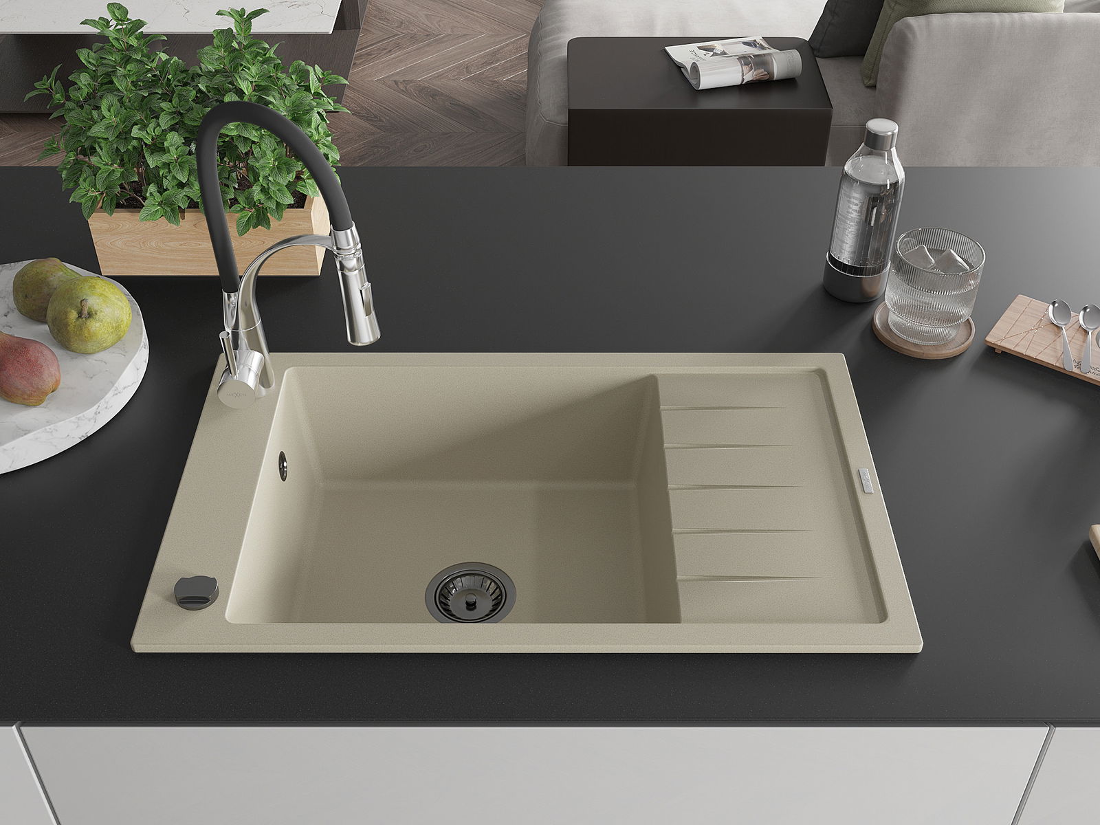 Mexen Elias egykamrás gránit mosogatótálca csepptálcával és Aster konyhai csapteleppel, bézs - 6511-69-73450-07-B
