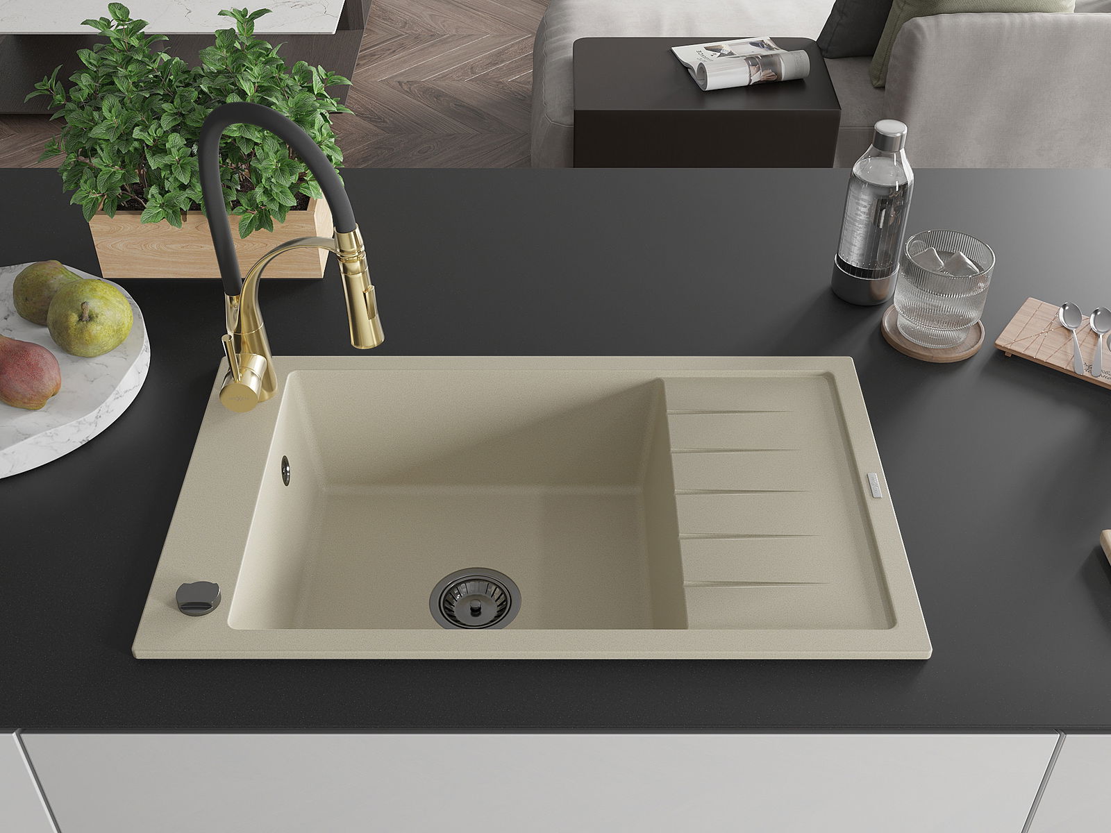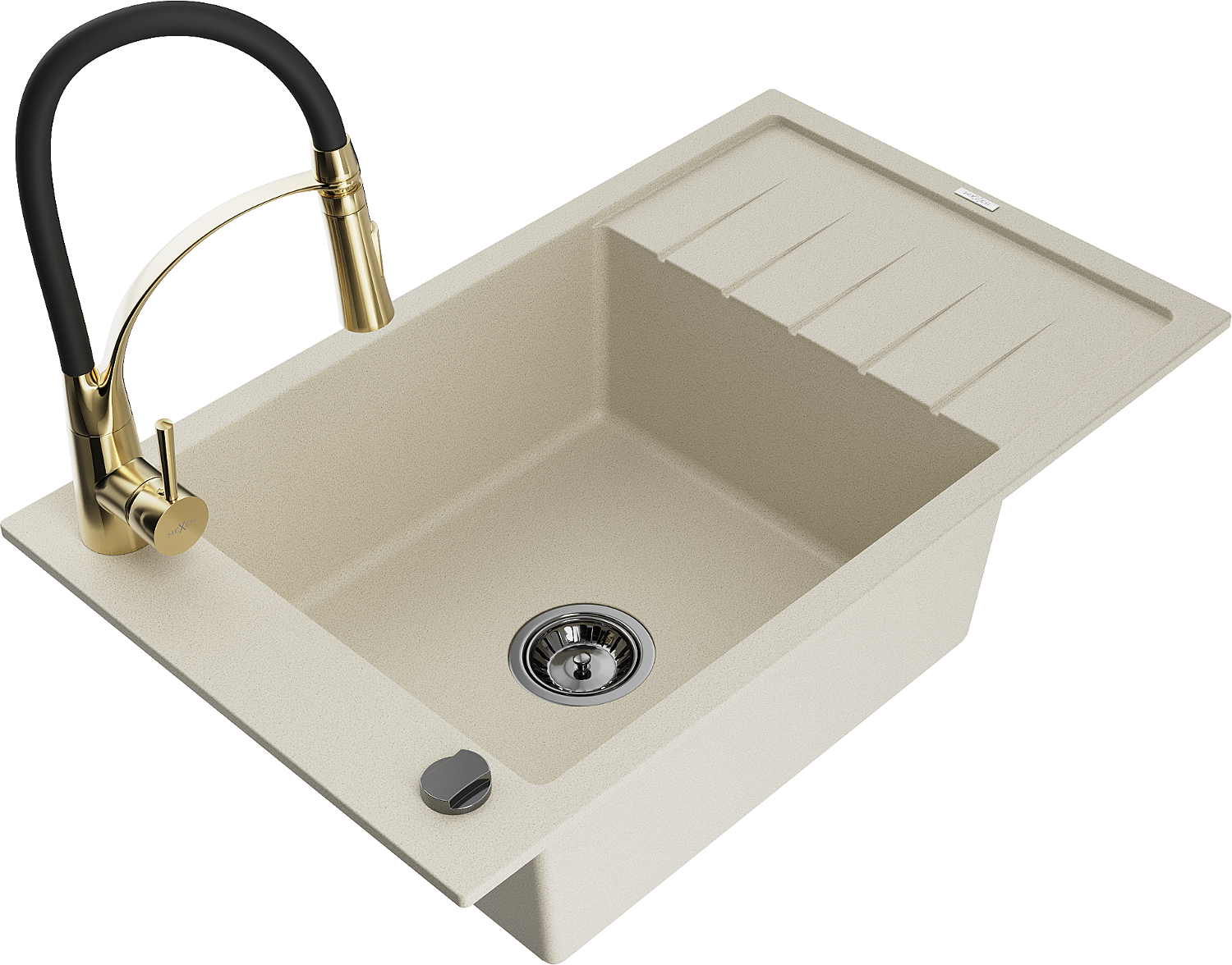 Mexen Elias egymedencés gránit mosogató csepegtetővel és Aster konyhai csapteleppel, bézs - 6511-69-73450-57-B
