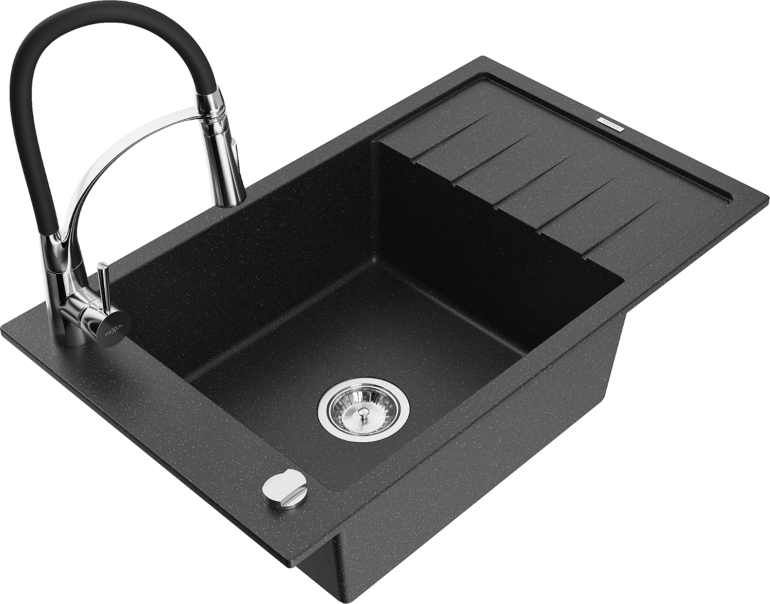 A mosogató magas minőségű gránitból készült. Elegáns, de mindenekelőtt praktikus kiegészítője minden konyhának, függetlenül annak stílusától. A gránit magas minősége és tartóssága hosszú távú használatot biztosít.