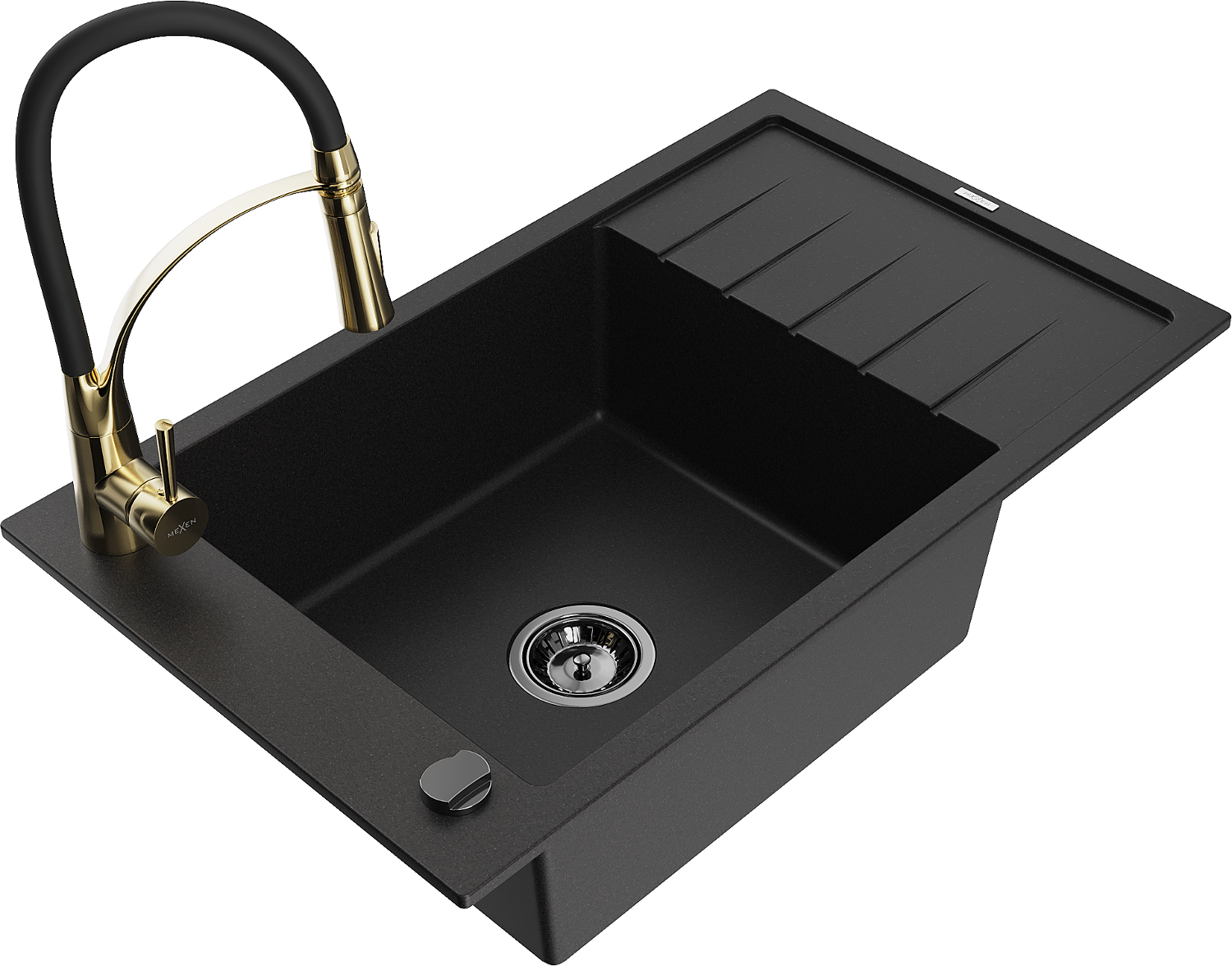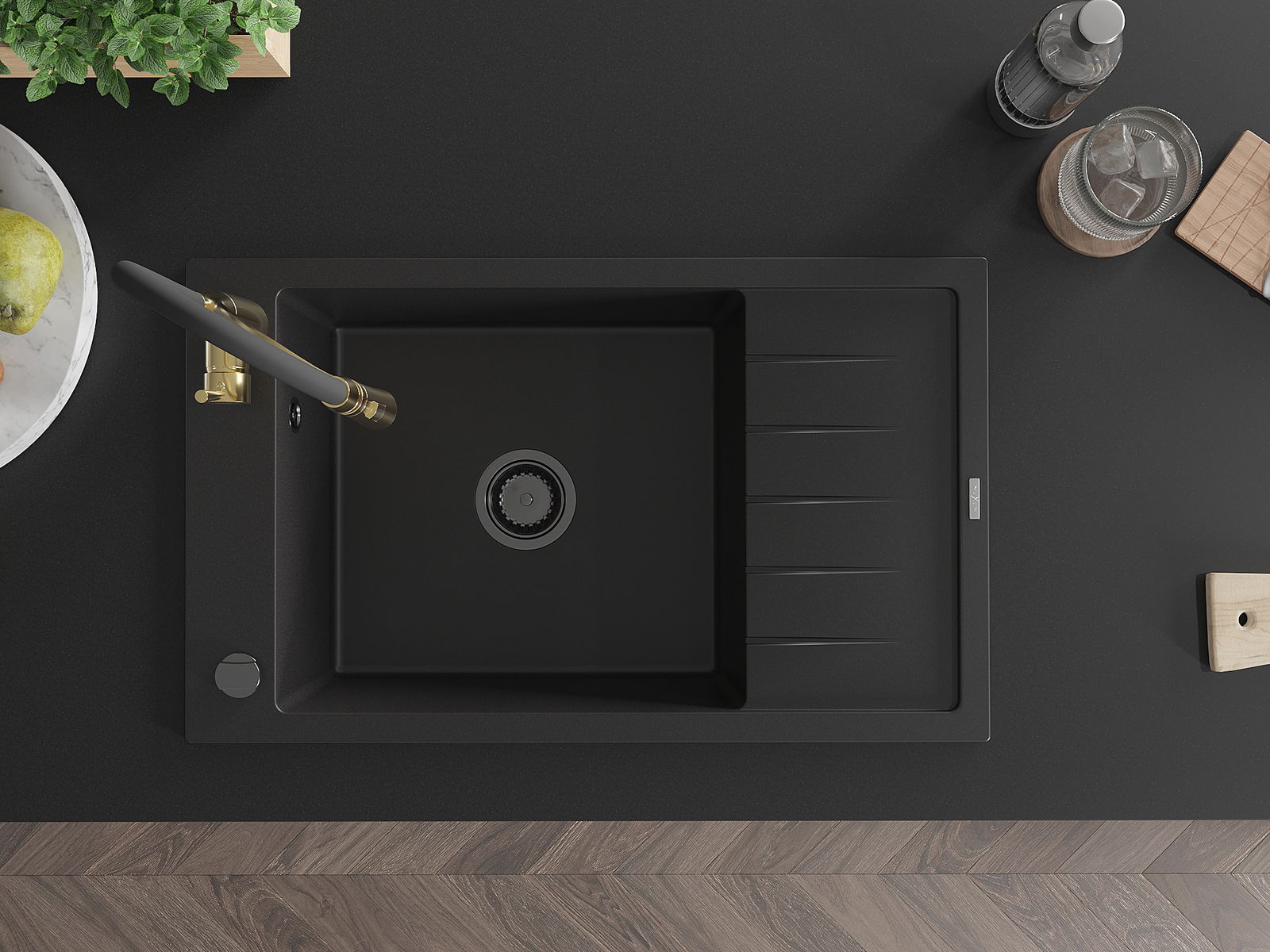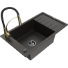 Mexen Elias egykamrás gránit mosogató csepegtetővel és Aster konyhai csappal, fekete - 6511-77-73450-57-B