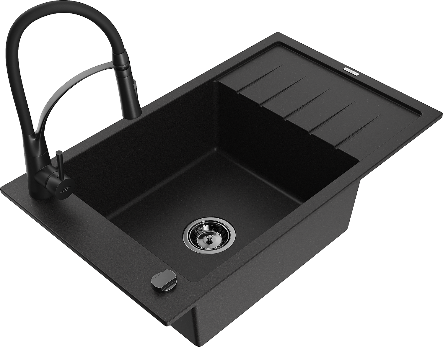 Mexen Elias egymedencés gránit mosogató lefolyóval és Aster konyhai csappal, fekete - 6511-77-73450-70-B