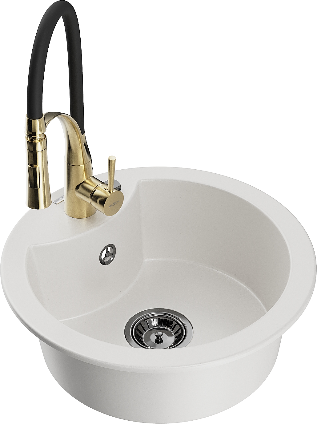 Mexen Diego 1-medencés gránit mosogató Aster konyhai csapteleppel, fehér - 6512-20-73450-57-B