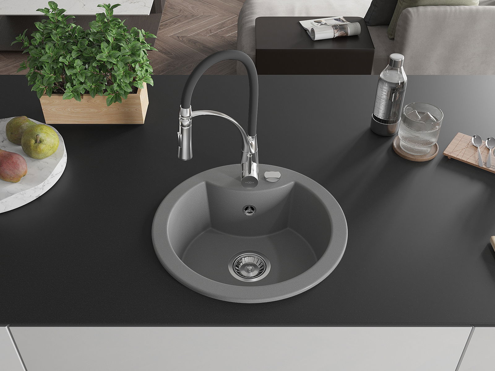 A mosogató kiváló minőségű gránitból készül. Ez egy elegáns és mindenekelőtt minden konyhához praktikus kiegészítés, stílusától függetlenül. A kiváló minőségű és a gránit tartósság biztosítja a sok éves használatát.