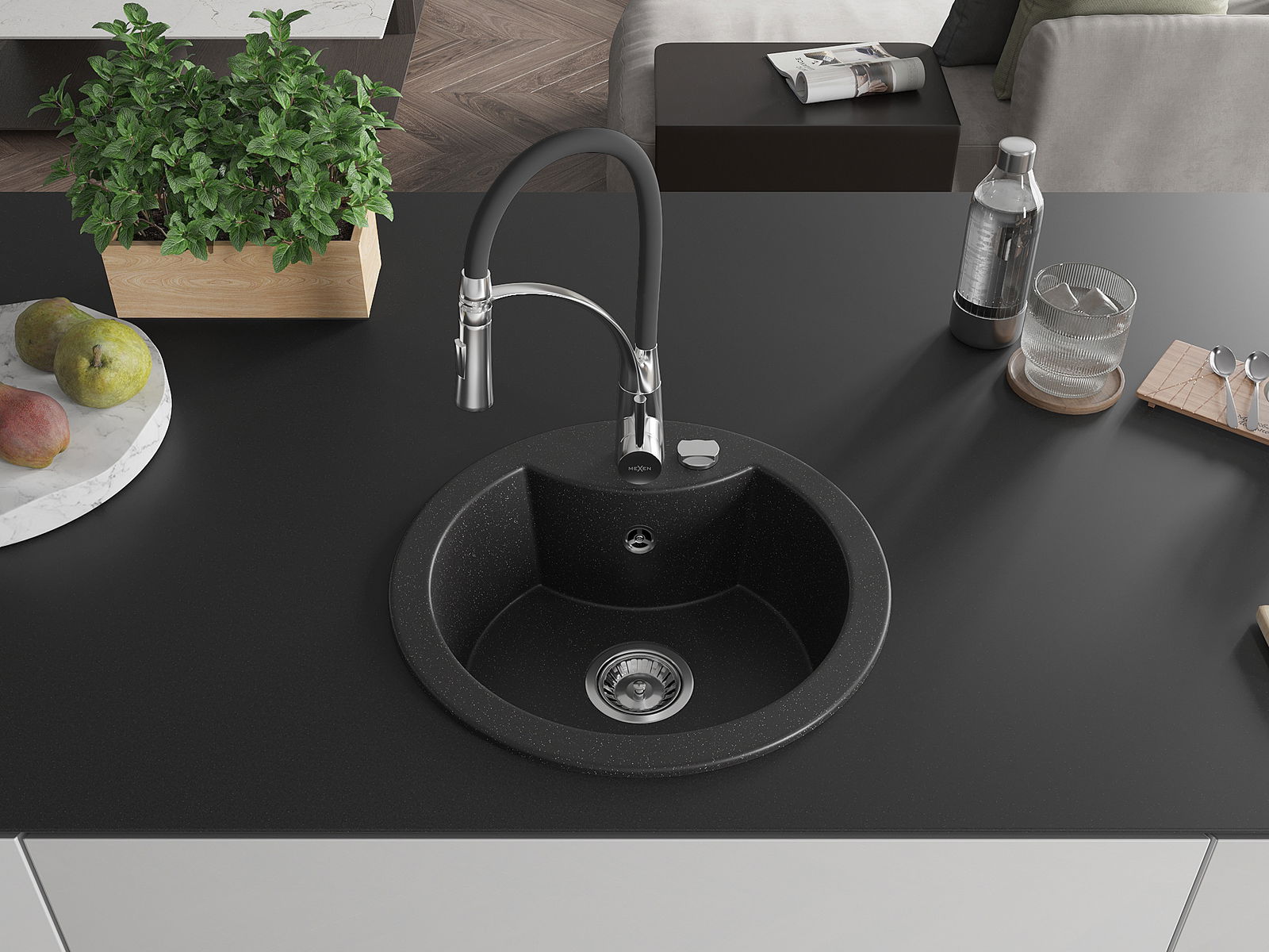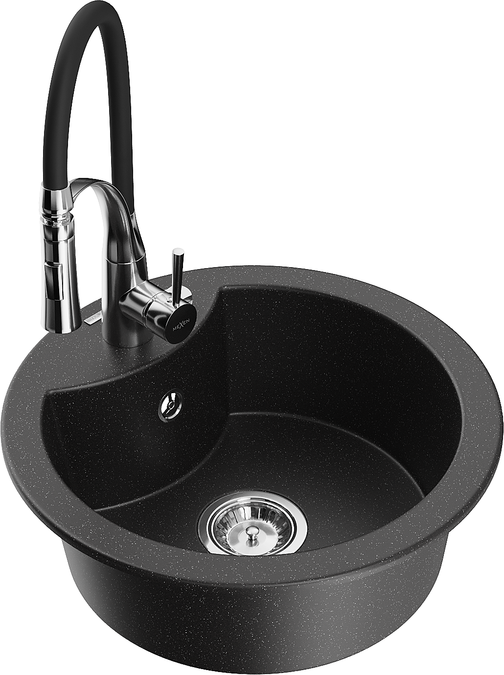 Mexen Diego egymedencés gránit mosogató konyhai csapteleppel Aster, fekete/ezüst metál - 6512-73-73450-07