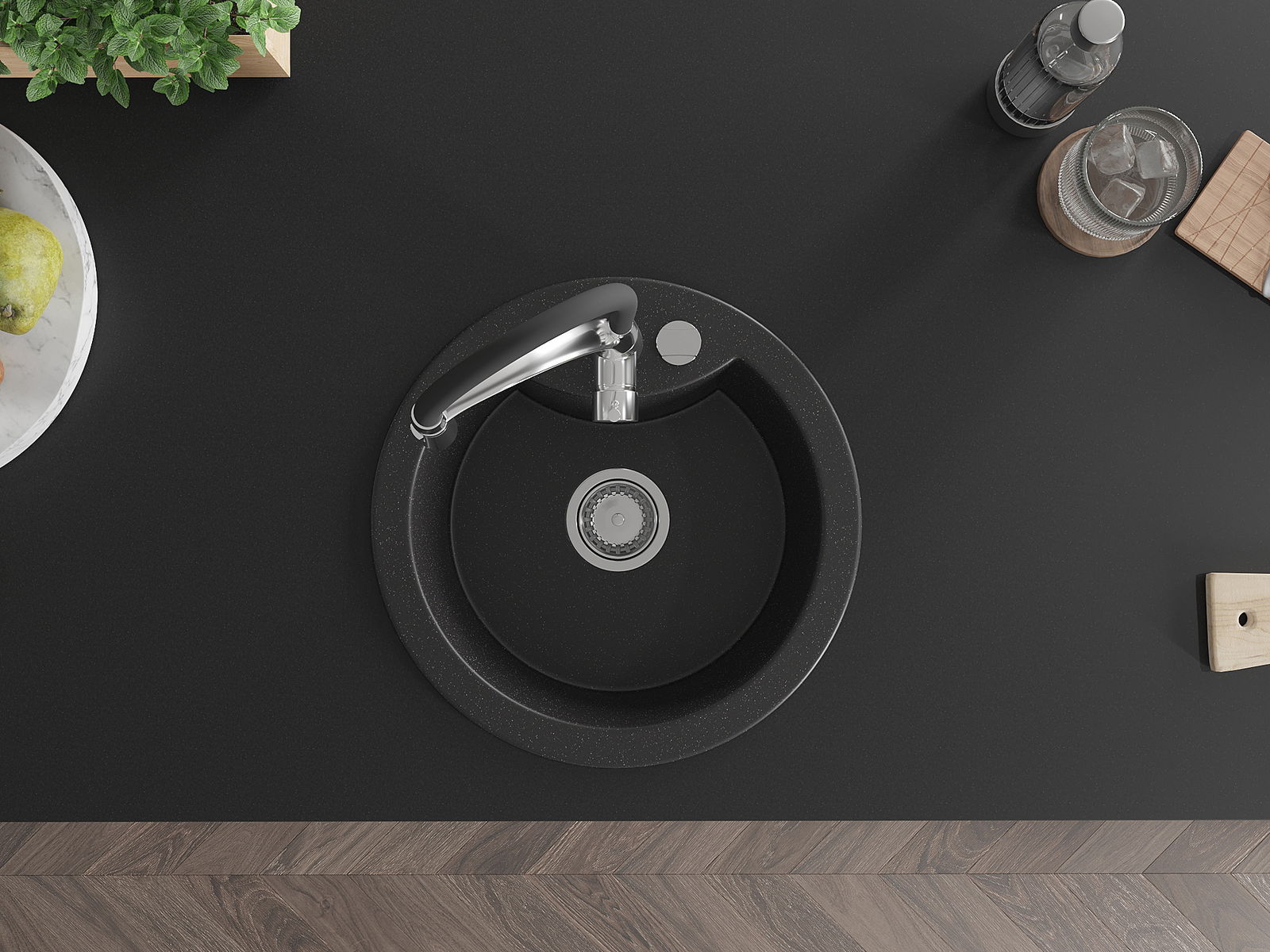 A mosogató kiváló minőségű gránitból készül. Ez egy elegáns és mindenekelőtt minden konyhához praktikus kiegészítés, stílusától függetlenül. A kiváló minőségű és a gránit tartósság biztosítja a sok éves használatát.
