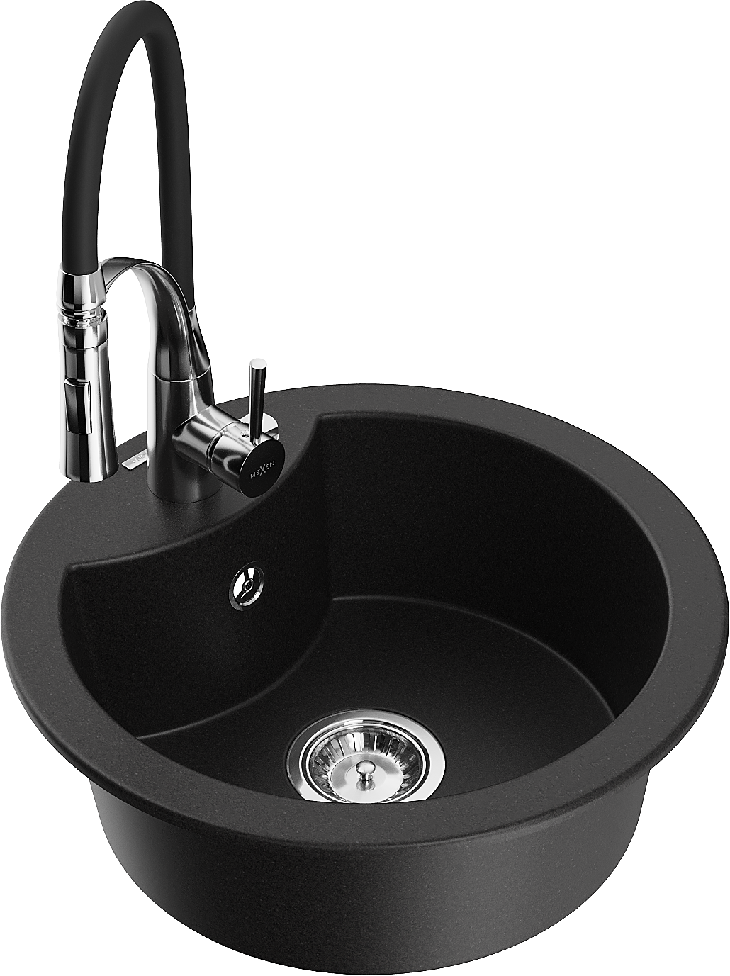 Mexen Diego gránit mosogató 1-medencés konyhai csappal Aster, fekete - 6512-77-73450-07