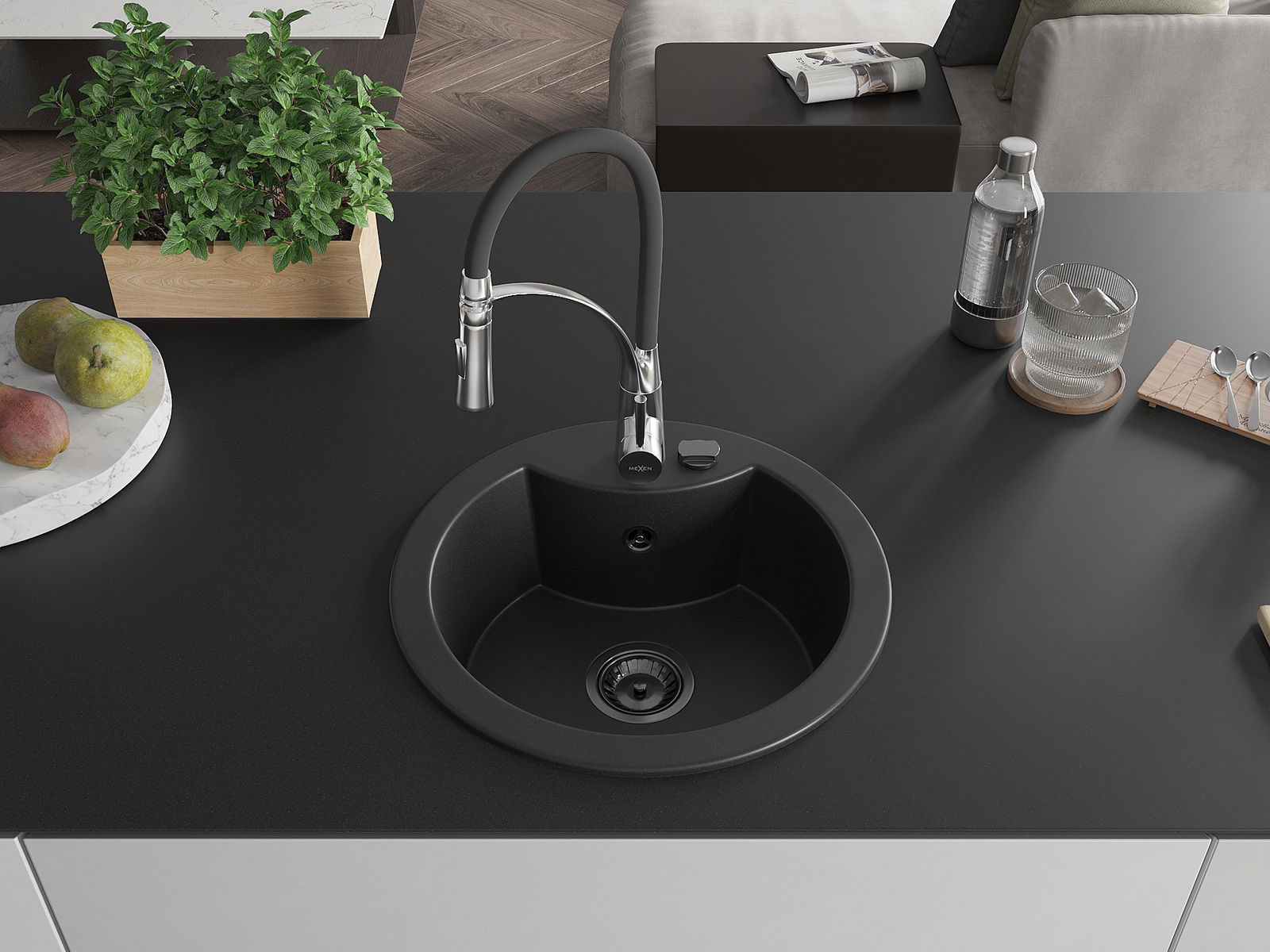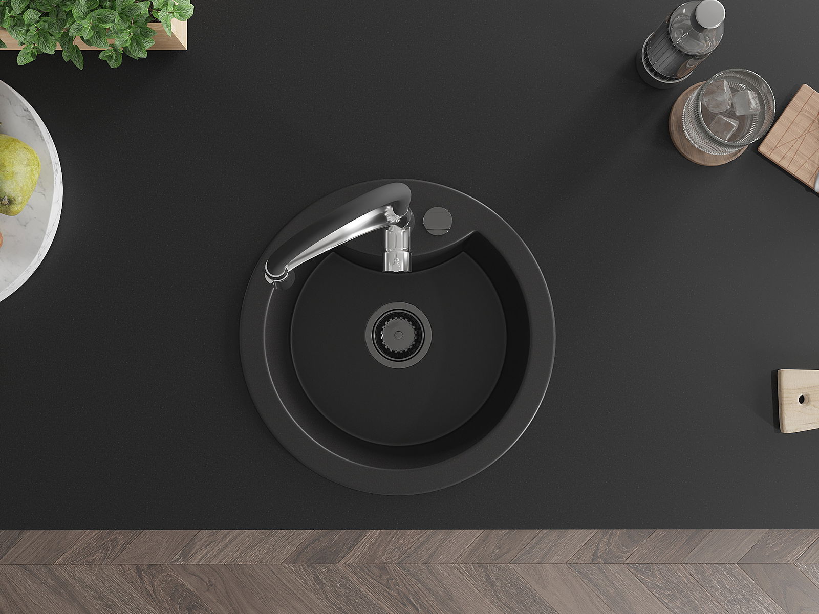 A mosogató magas minőségű gránitból készült. Elegáns, de mindenekelőtt praktikus kiegészítője minden konyhának, függetlenül annak stílusától. A gránit magas minősége és tartóssága hosszú távú használatot biztosít.