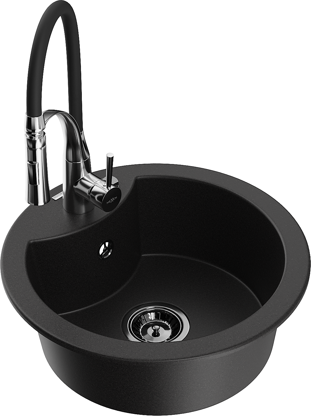 Mexen Diego 1-medencés gránit mosogató Aster konyhai csapteleppel, fekete - 6512-77-73450-07-B
