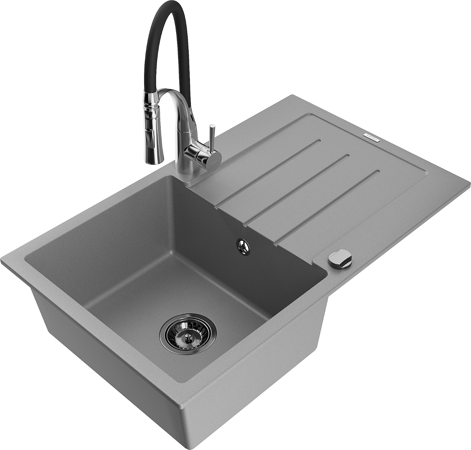Mexen Bruno egymedencés gránit mosogató csepegtetővel és Aster konyhai csappal, szürke - 6513-71-73450-07-B