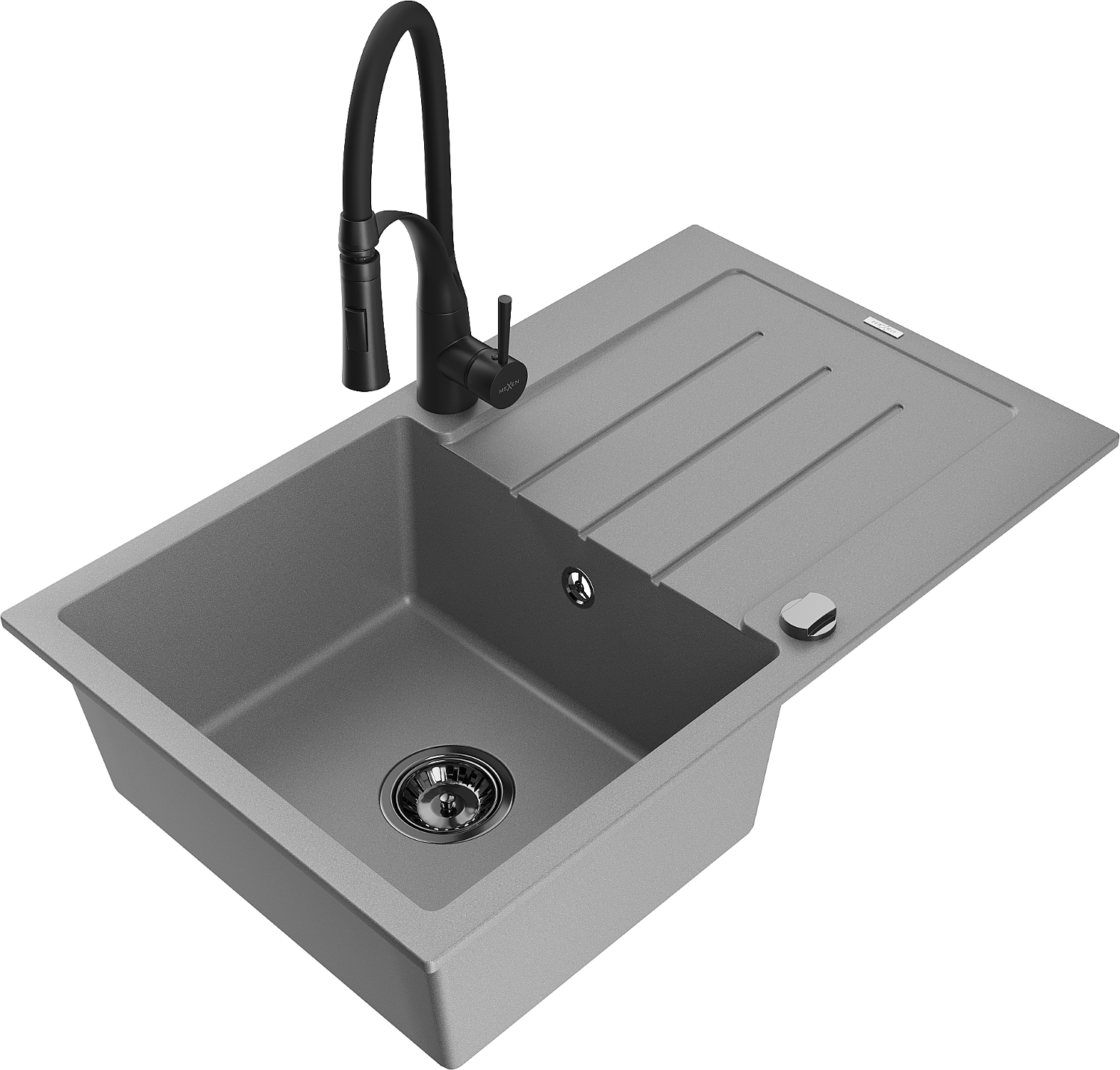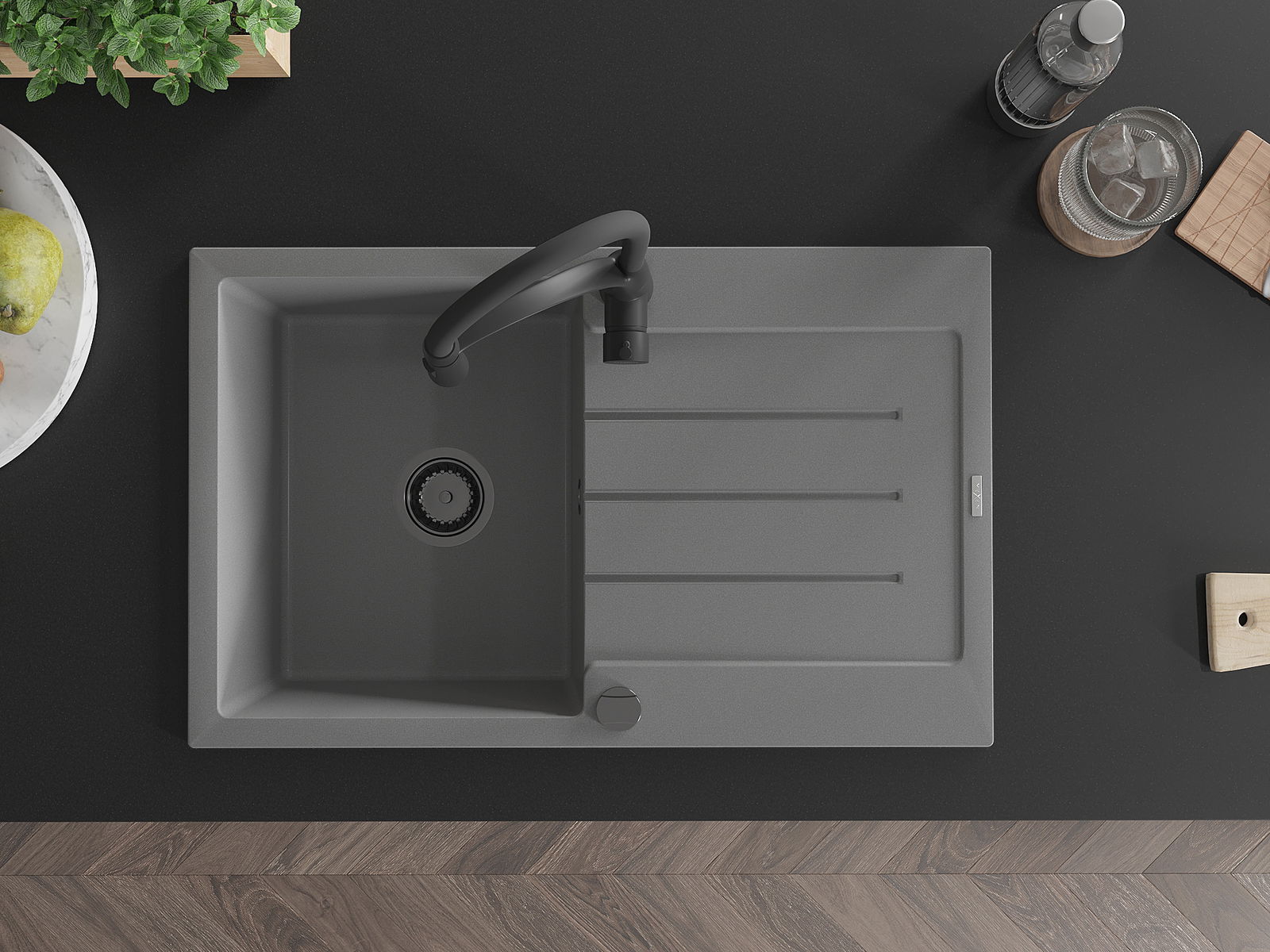 Mexen Bruno 1 medencés gránit mosogató csepegtetővel és Aster konyhai csappal, szürke - 6513-71-73450-70-B