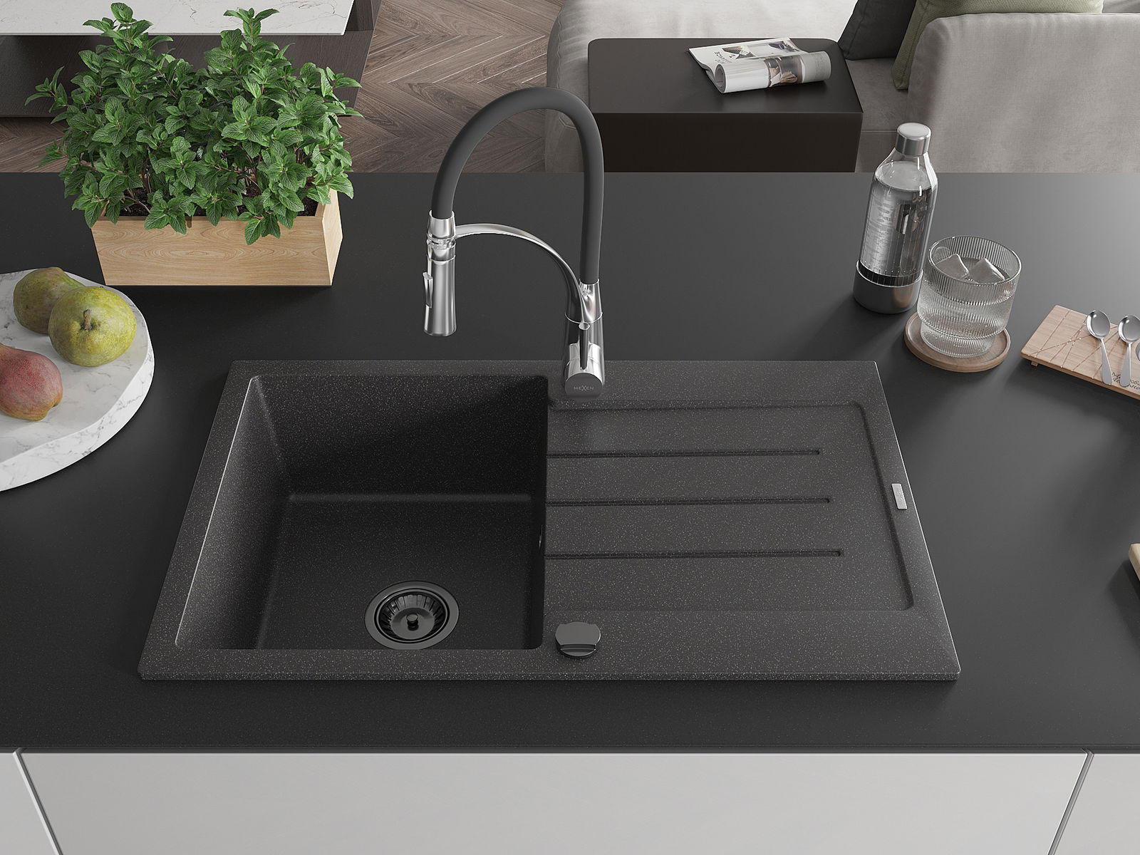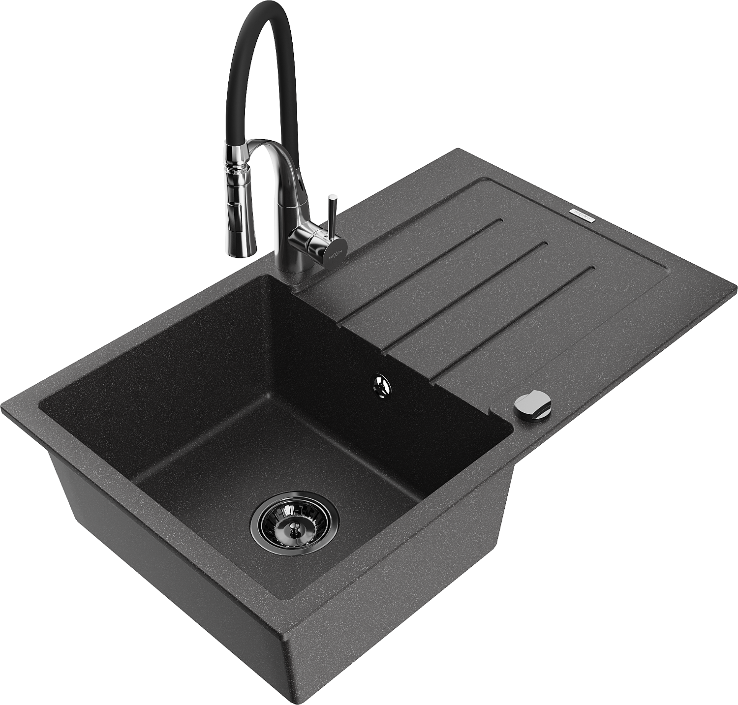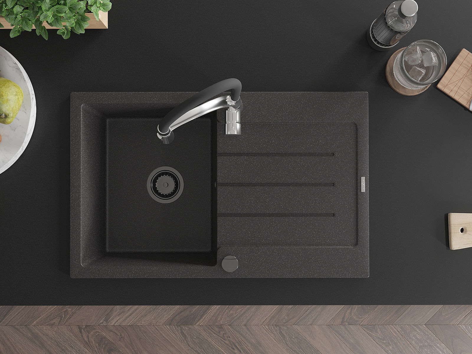 A mosogató magas minőségű gránitból készült. Elegáns, de mindenekelőtt praktikus kiegészítője minden konyhának, függetlenül annak stílusától. A gránit magas minősége és tartóssága hosszú távú használatot biztosít.