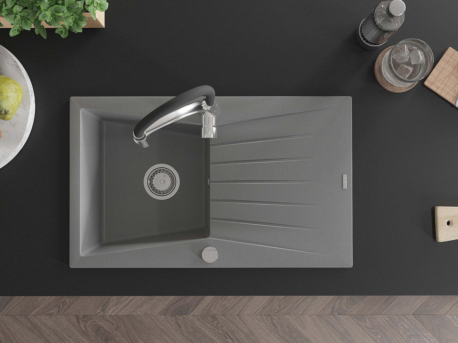 A mosogató kiváló minőségű gránitból készül. Ez egy elegáns és mindenekelőtt minden konyhához praktikus kiegészítés, stílusától függetlenül. A kiváló minőségű és a gránit tartósság biztosítja a sok éves használatát.
