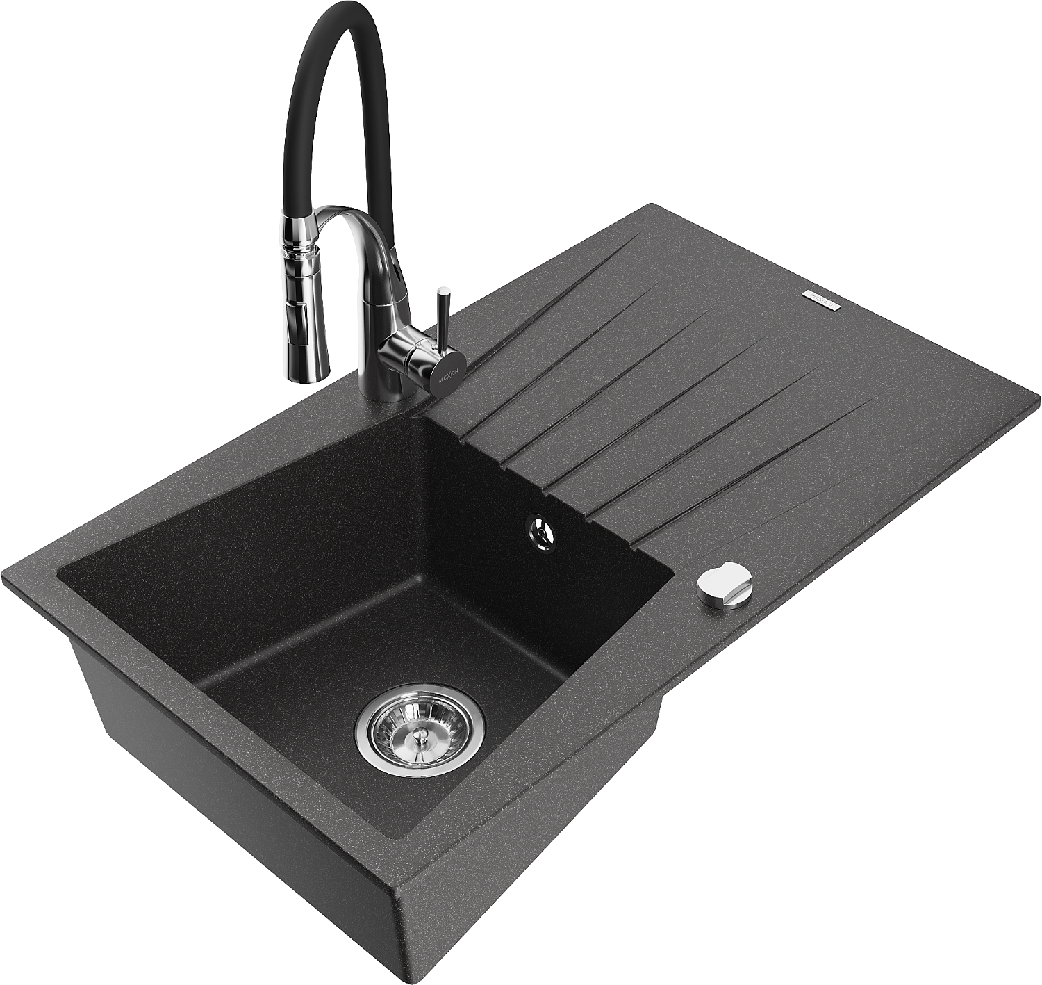Mexen Cesar 1 rekeszes, csepegtetős gránit mosogató és Aster konyhai csaptelep, fekete pöttyös - 6514-76-73450-07