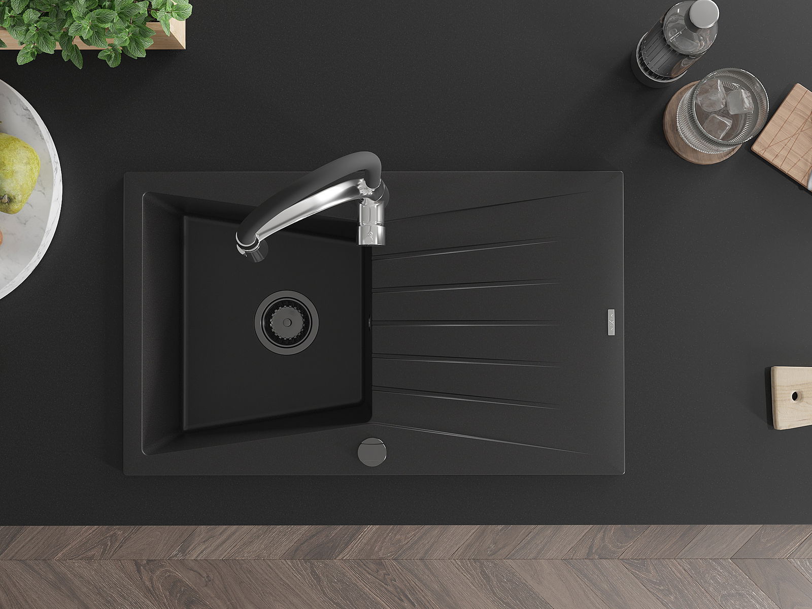 A mosogató kiváló minőségű gránitból készül. Ez egy elegáns és mindenekelőtt minden konyhához praktikus kiegészítés, stílusától függetlenül. A kiváló minőségű és a gránit tartósság biztosítja a sok éves használatát.