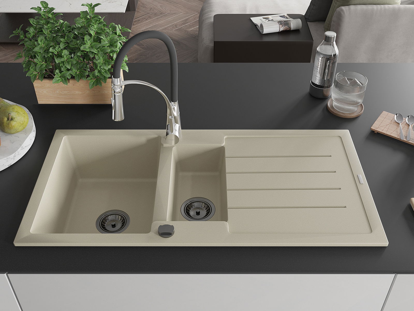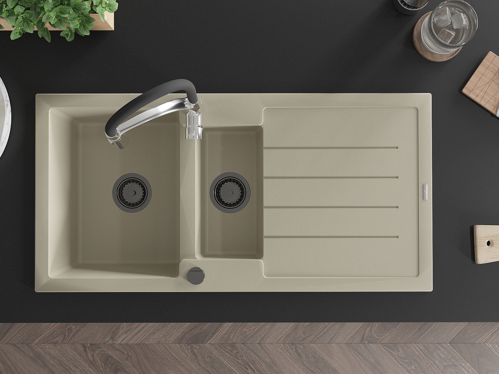 A mosogató kiváló minőségű gránitból készül. Ez egy elegáns és mindenekelőtt minden konyhához praktikus kiegészítés, stílusától függetlenül. A kiváló minőségű és a gránit tartósság biztosítja a sok éves használatát.