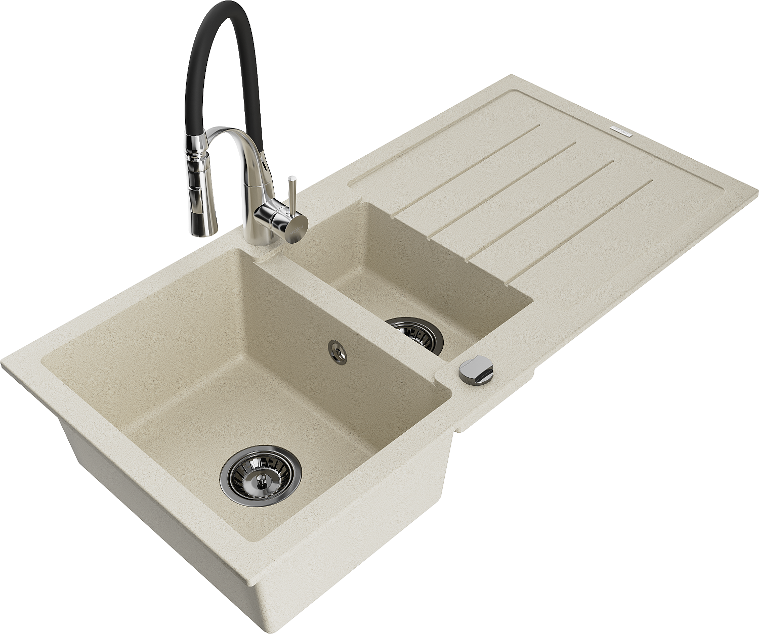 Mexen Andres 1,5 kamrás gránit mosogató csepegtetővel és Aster konyhai csappal, bézs - 6515-69-73450-07-B