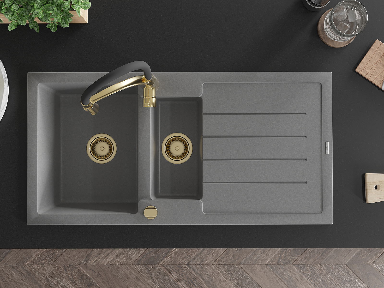 A mosogató kiváló minőségű gránitból készül. Ez egy elegáns és mindenekelőtt minden konyhához praktikus kiegészítés, stílusától függetlenül. A kiváló minőségű és a gránit tartósság biztosítja a sok éves használatát.
