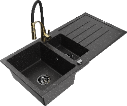 Mexen Andres gránit mosogató 1,5 rekeszes csepegtetővel és Aster konyhai csapteleppel, fekete/ezüst - 6515-73-73450-57-B