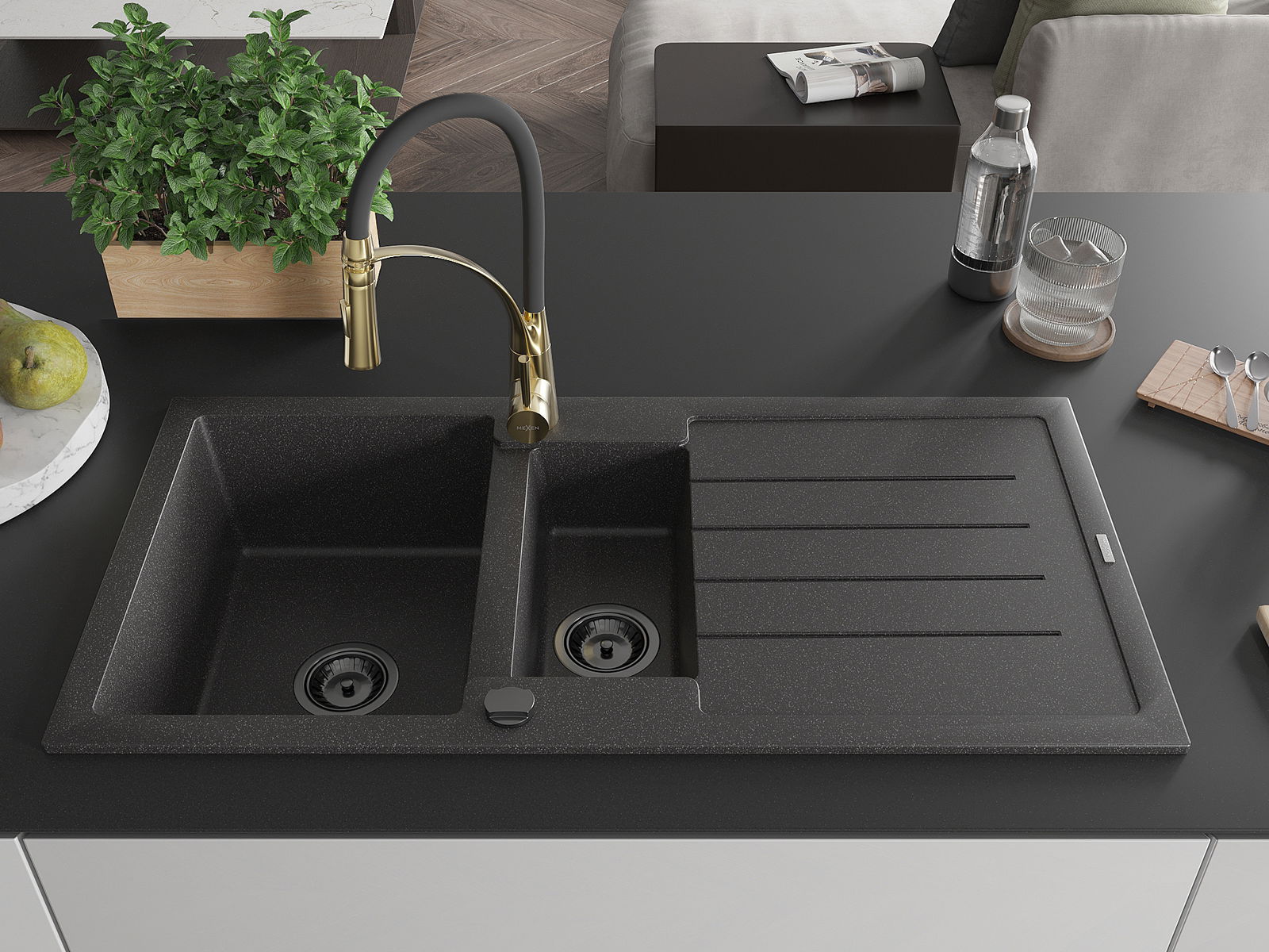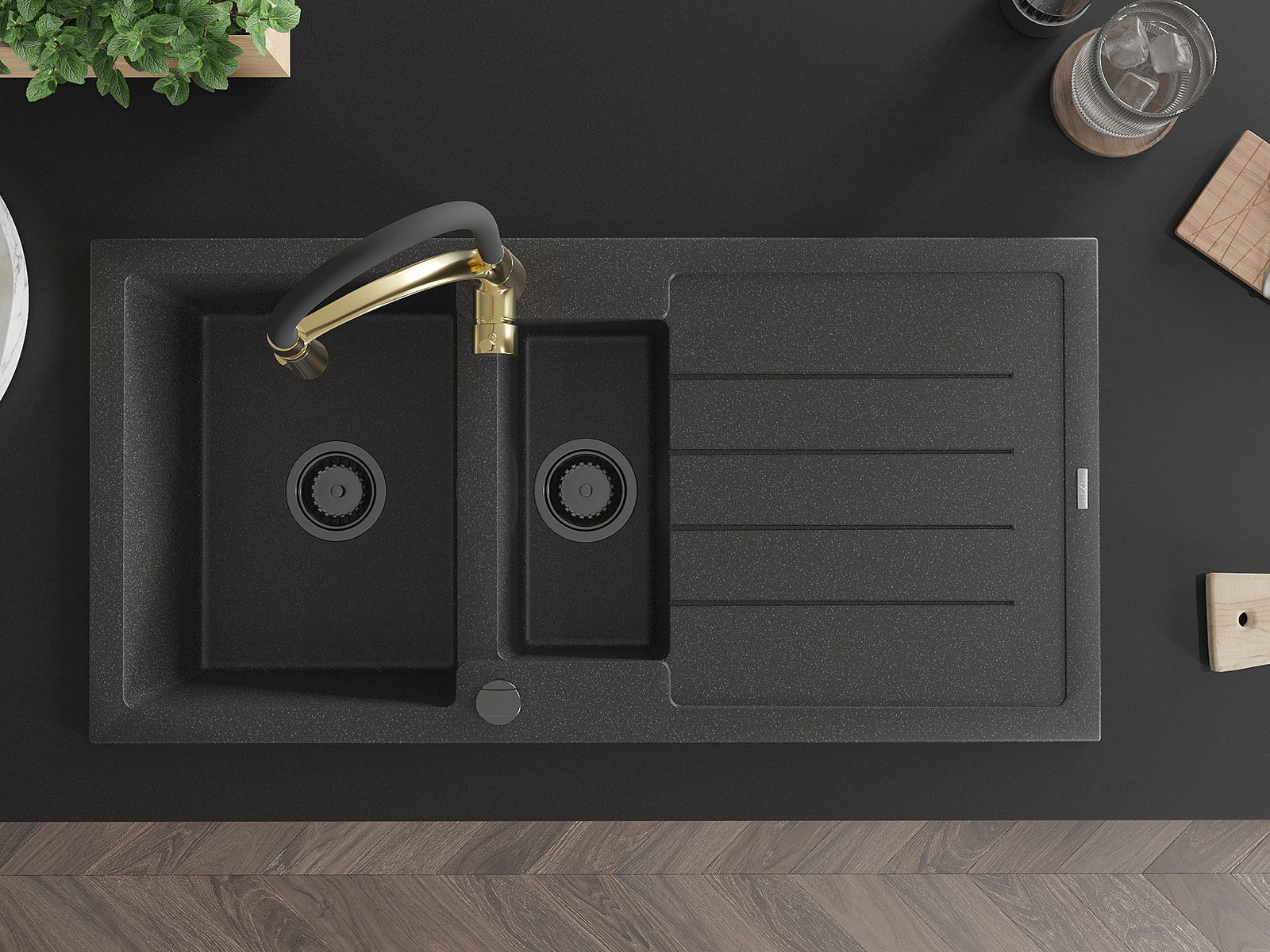 A mosogató kiváló minőségű gránitból készül. Ez egy elegáns és mindenekelőtt minden konyhához praktikus kiegészítés, stílusától függetlenül. A kiváló minőségű és a gránit tartósság biztosítja a sok éves használatát.