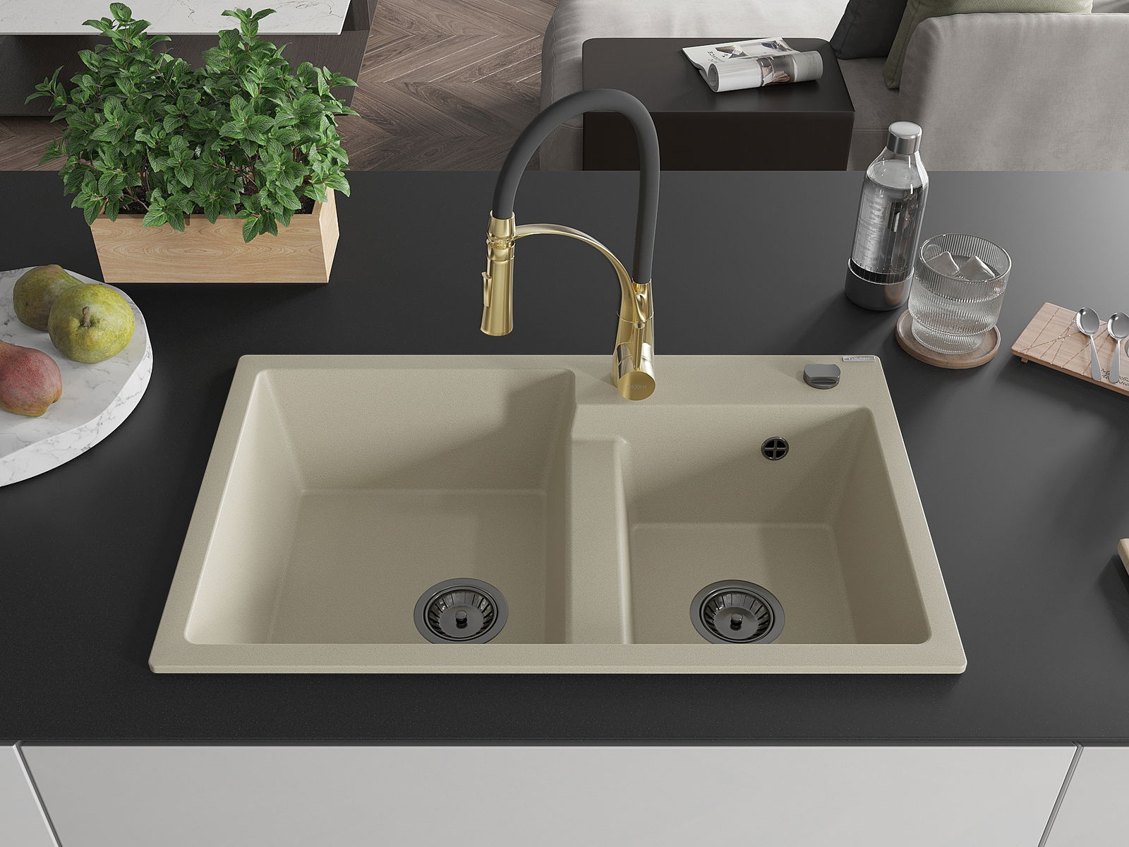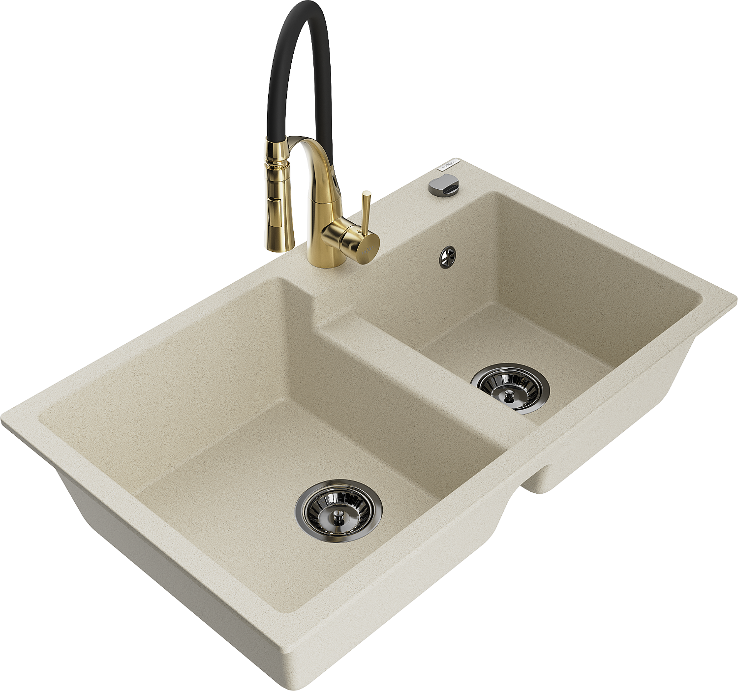Mexen Tomas gránit 2-medencés mosogató Aster konyhai csappal, bézs - 6516-69-73450-57-B