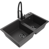 Mexen Tomas gránit 2-medencés mosogató Aster konyhai csapteleppel, fekete/ezüst metál - 6516-73-73450-70-B